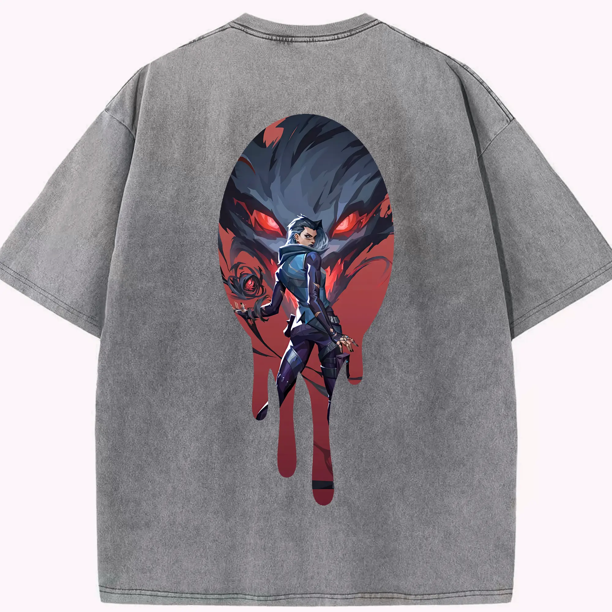 VALORANT グッズ,レイナ - 綿100% ヴィンテージ風 半袖Tシャツ ・ フロントプリント ・ 柔らか肌触り ・ 通気性 快適 ・ スポーツ カジュアル 外出用