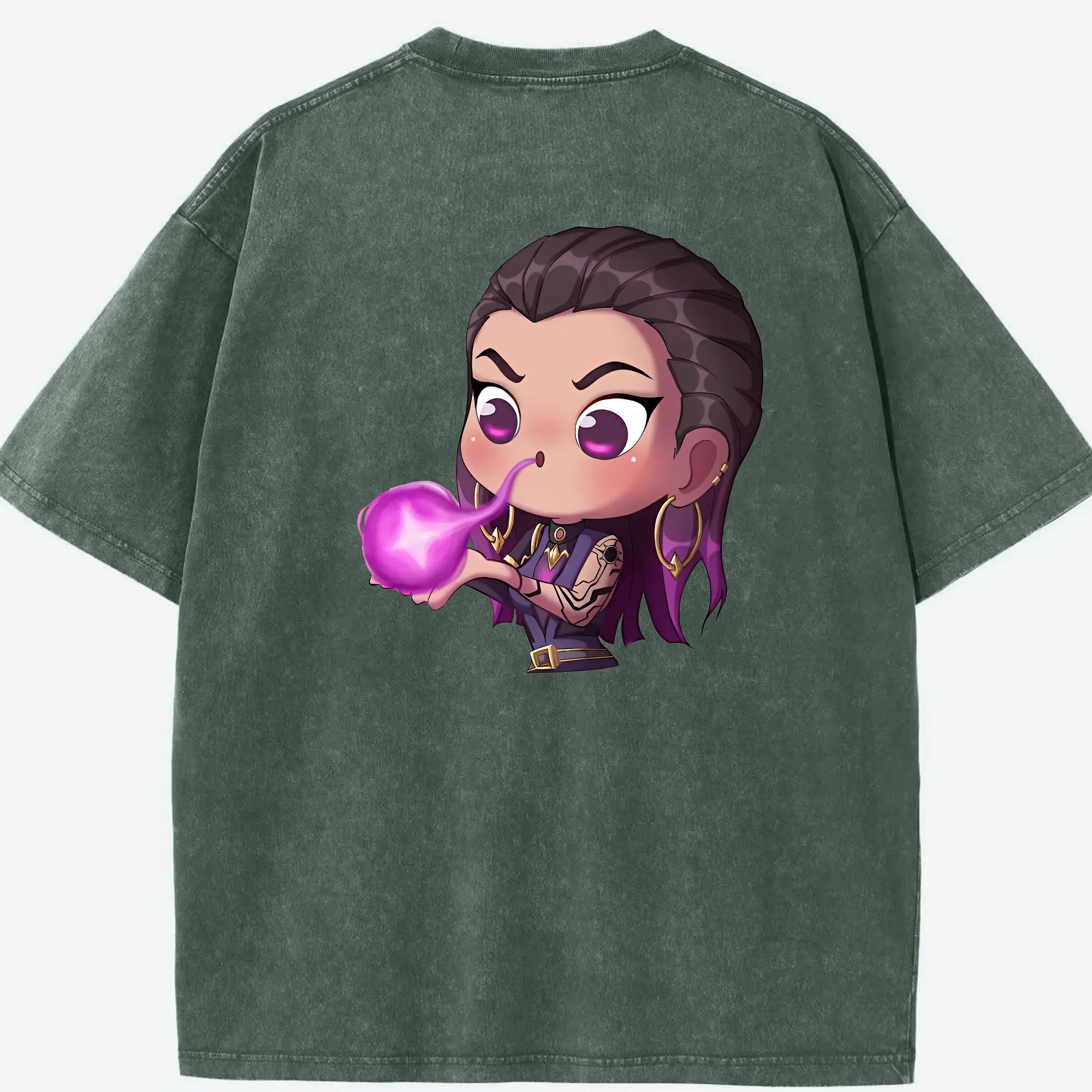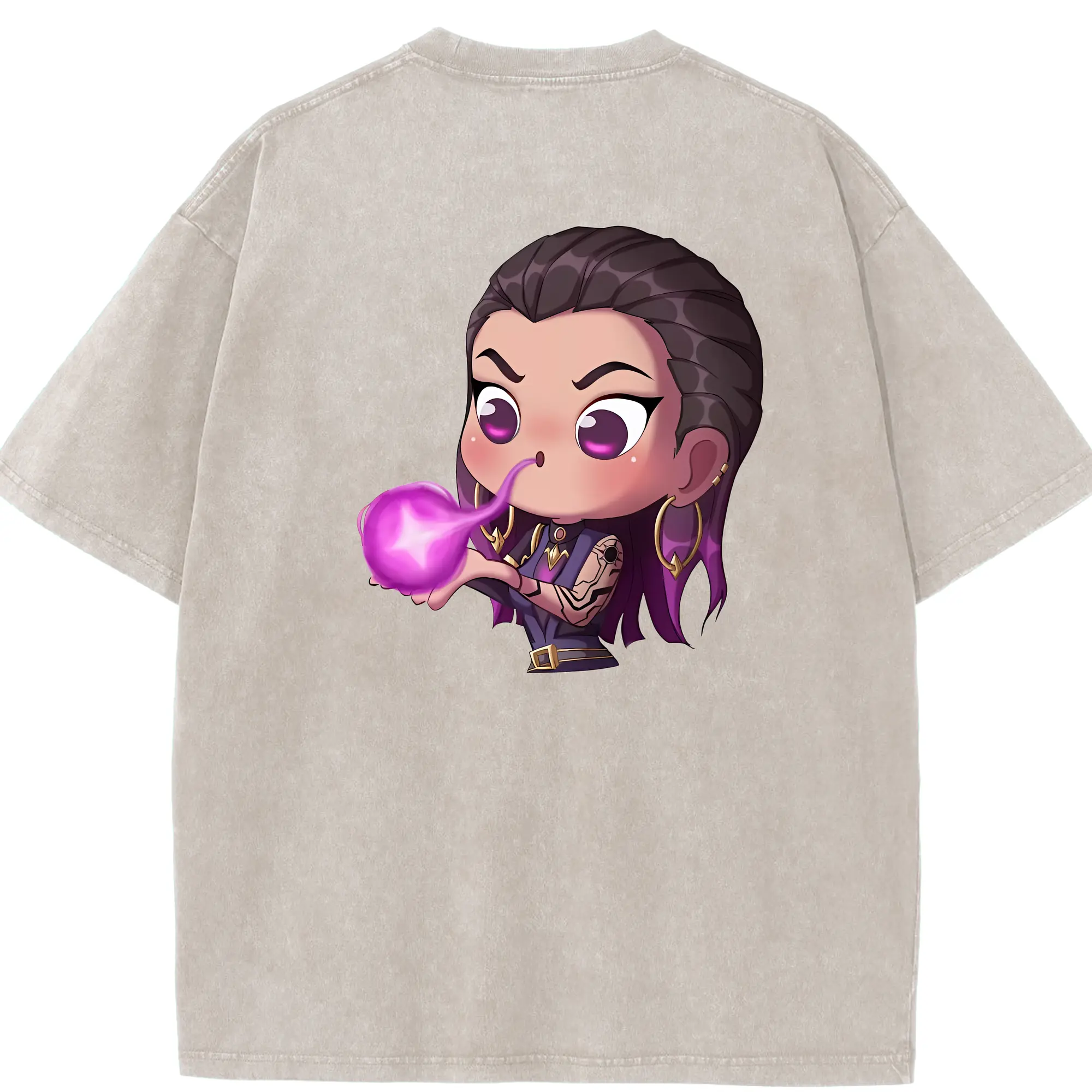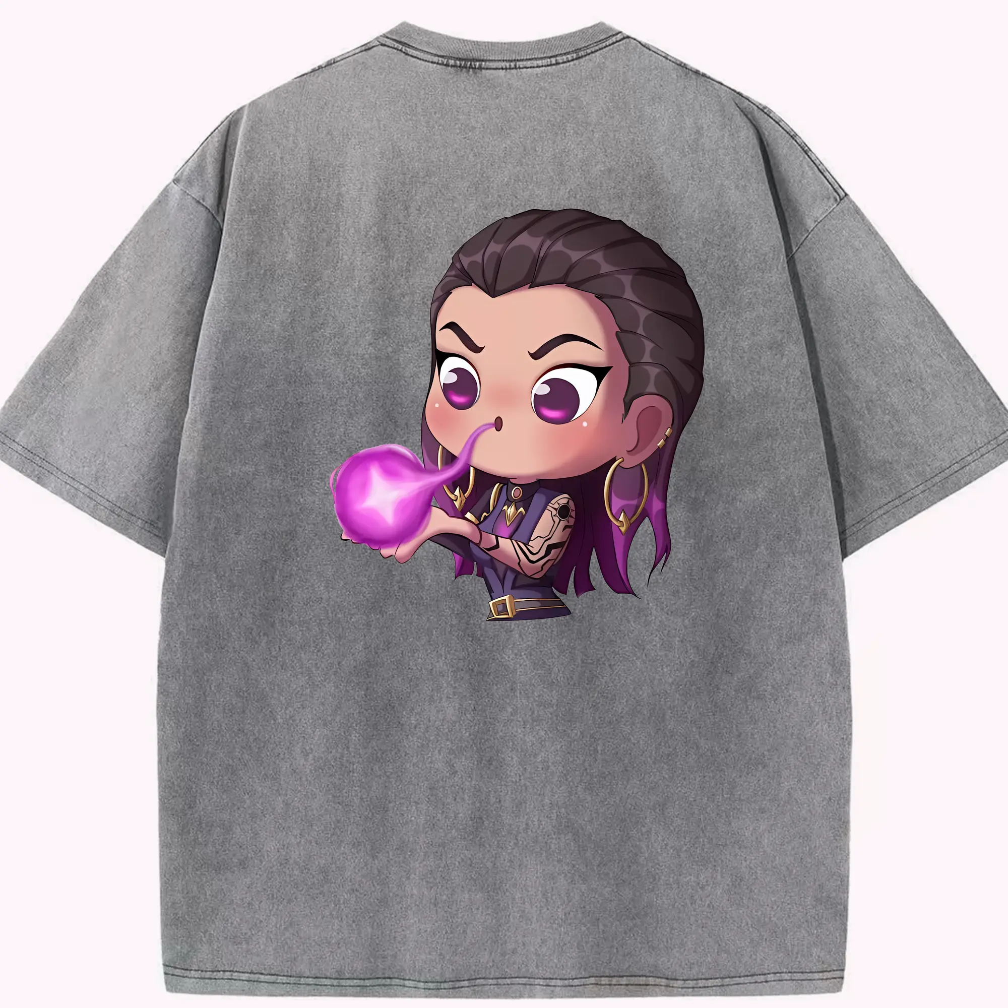 VALORANT グッズ,ヨル - 綿100% ヴィンテージ風 半袖Tシャツ ・ 背面プリント ・ 柔らか肌触り ・ 通気性 快適 ・ スポーツ カジュアル 外出用
