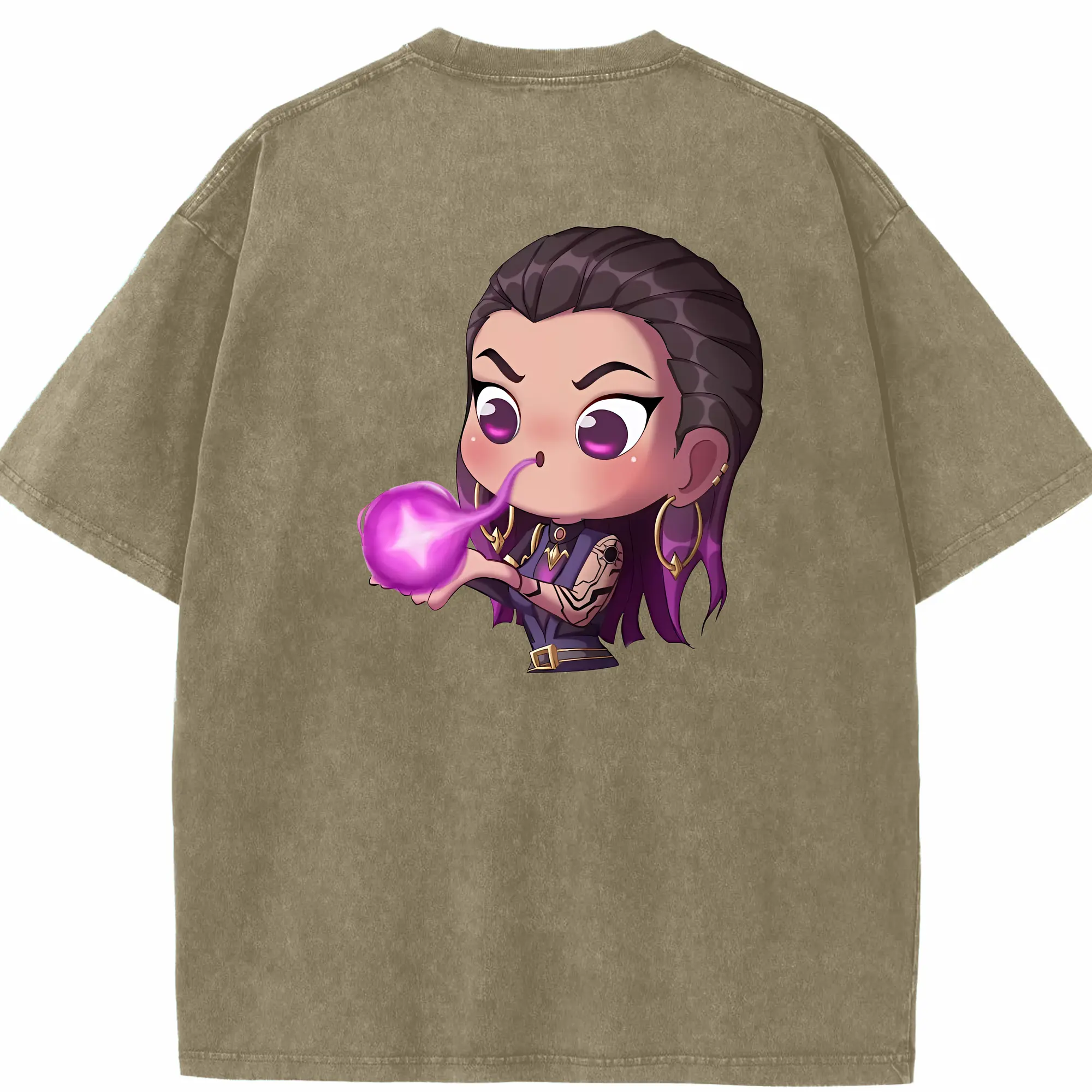 VALORANT グッズ,レイナ - 綿100% ヴィンテージ風 半袖Tシャツ ・ フロントプリント ・ 柔らか肌触り ・ 通気性 快適 ・ スポーツ カジュアル 外出用