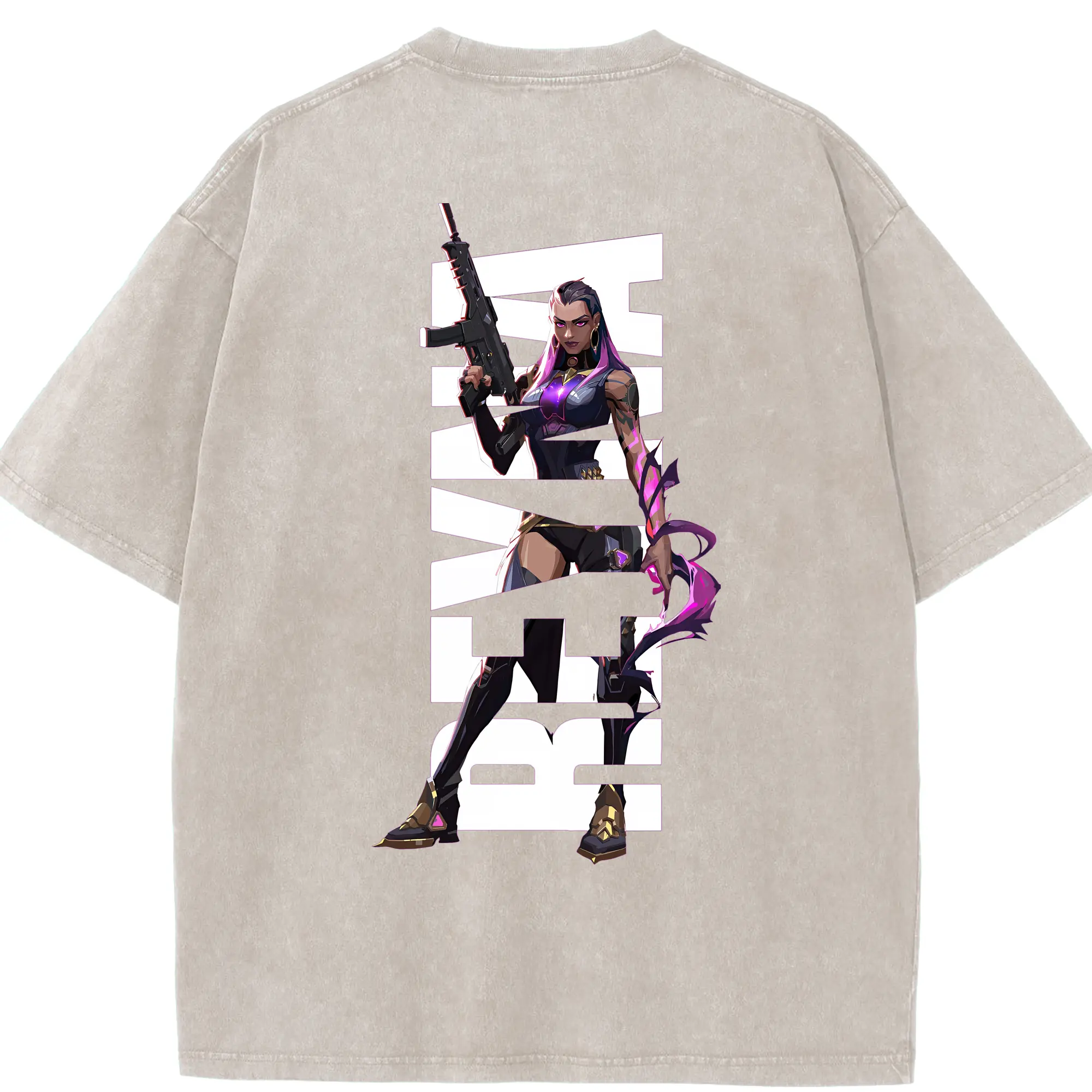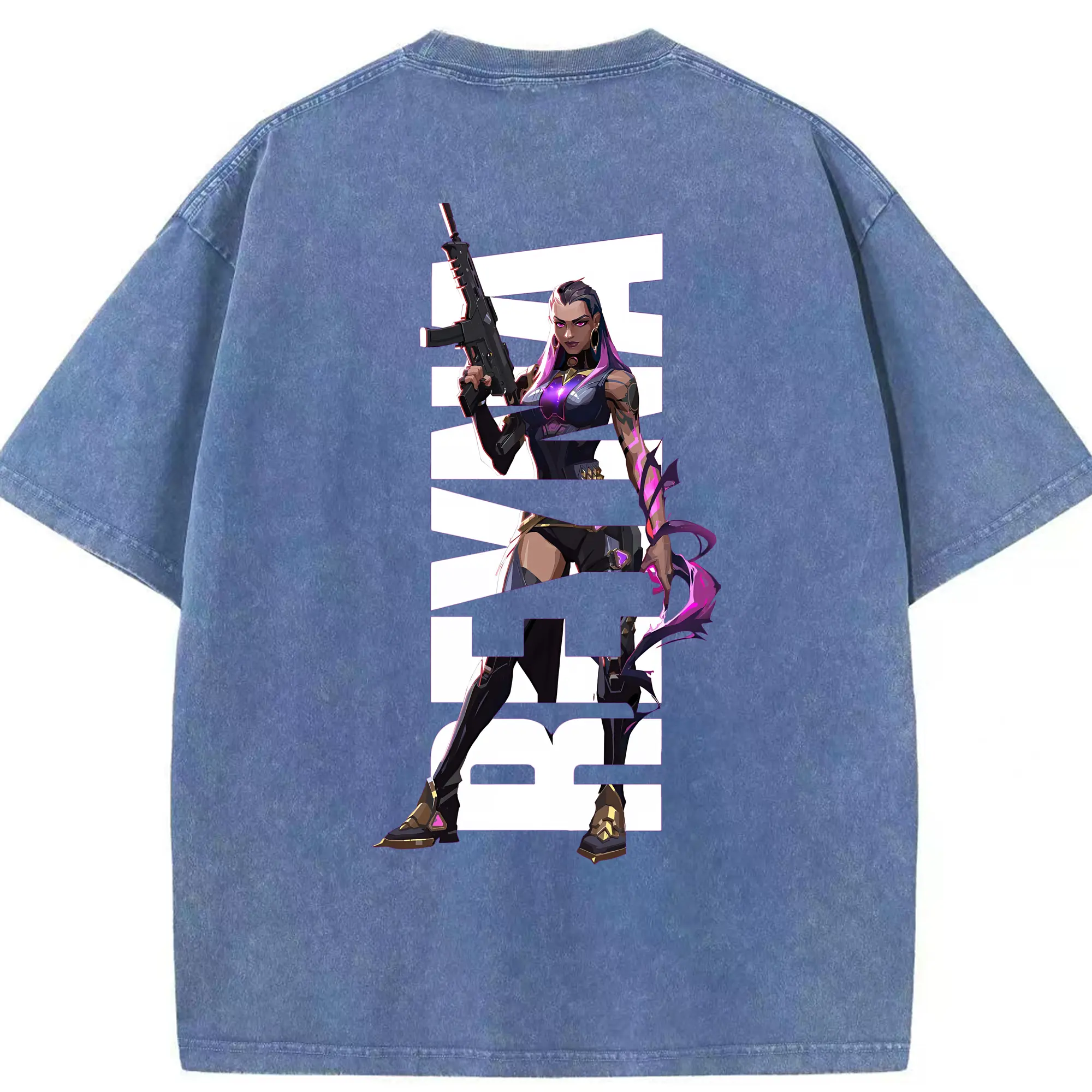 VALORANT グッズ,レイナ - 綿100% ヴィンテージ風 半袖Tシャツ ・ フロントプリント ・ 柔らか肌触り ・ 通気性 快適 ・ スポーツ カジュアル 外出用