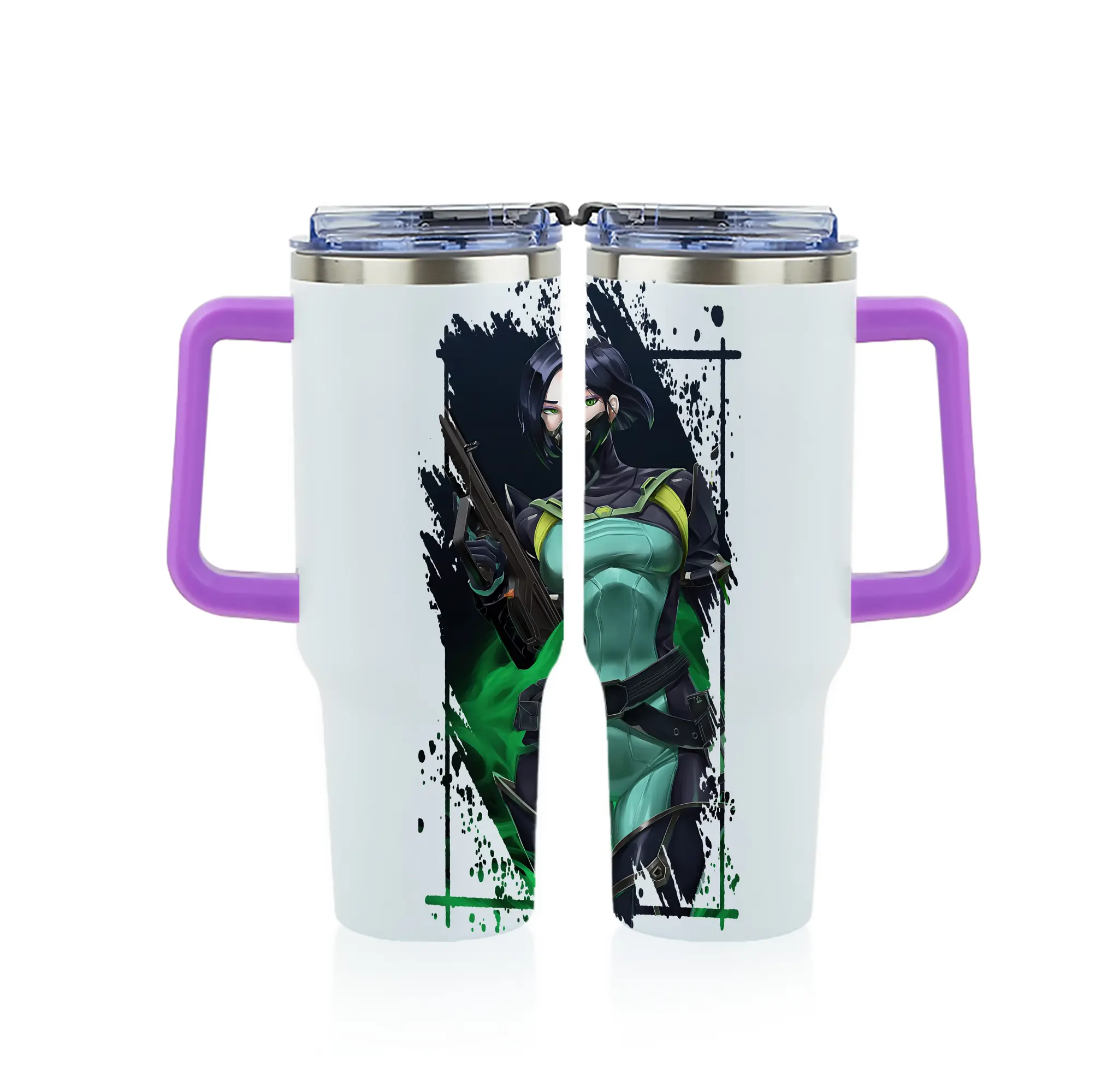 VALORANT グッズ,ヴァイパー - 1200mL フルプリント車用タンブラー ・ 304ステンレス 内側 ・ 201ステンレス 外側 ・ 保温 保冷 ・ 通勤 ドライブ アウトドア用