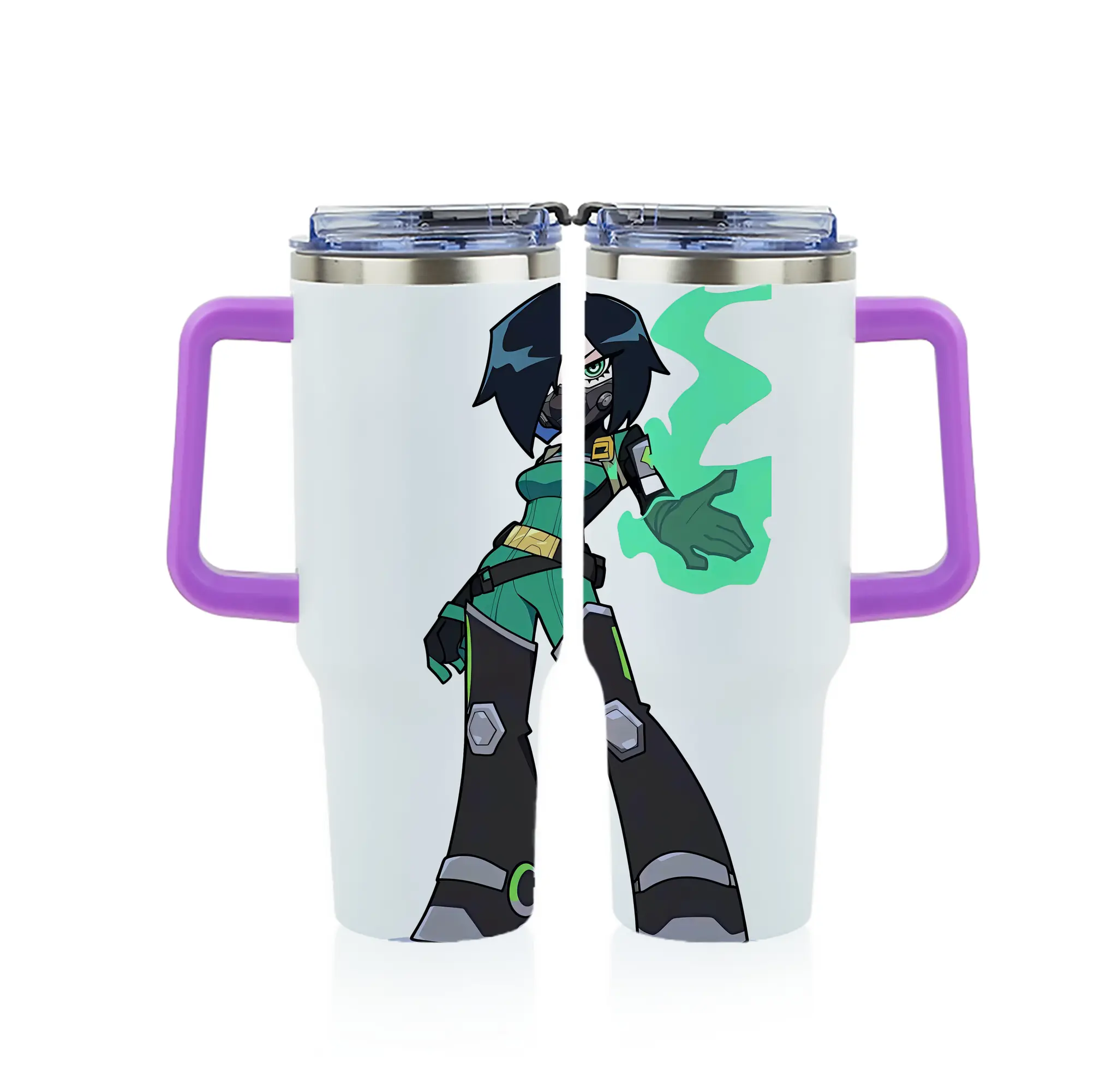 VALORANT グッズ,ヴァイパー - 1200mL フルプリント車用タンブラー ・ 304ステンレス 内側 ・ 201ステンレス 外側 ・ 保温 保冷 ・ 通勤 ドライブ アウトドア用
