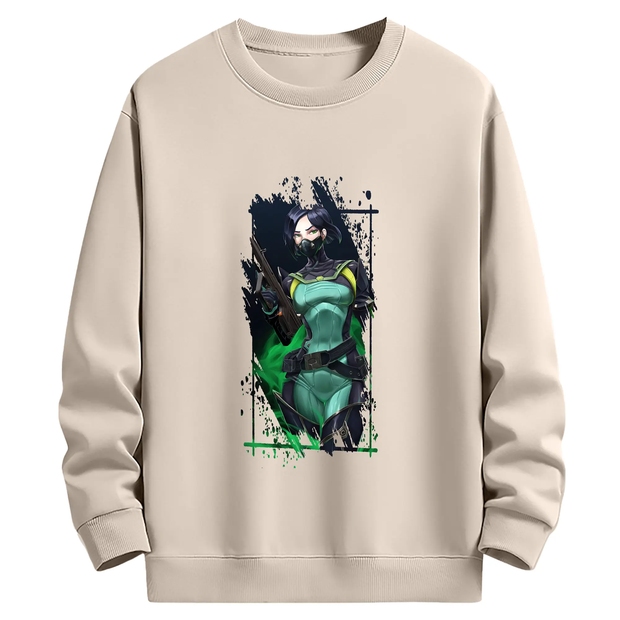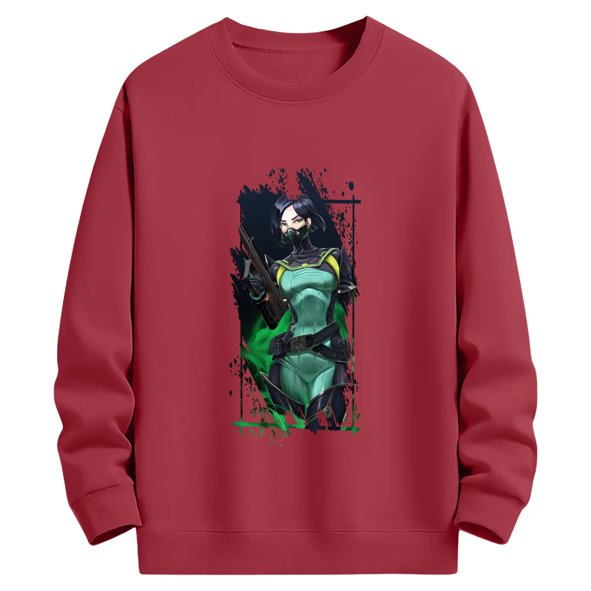 VALORANT グッズ,ヴァイパー - 薄手 クルーネック スウェット 裏毛260g · ポリエステル 春秋向け カジュアル 男女兼用 · トレーナー デイリー スポーツ 散歩に最適