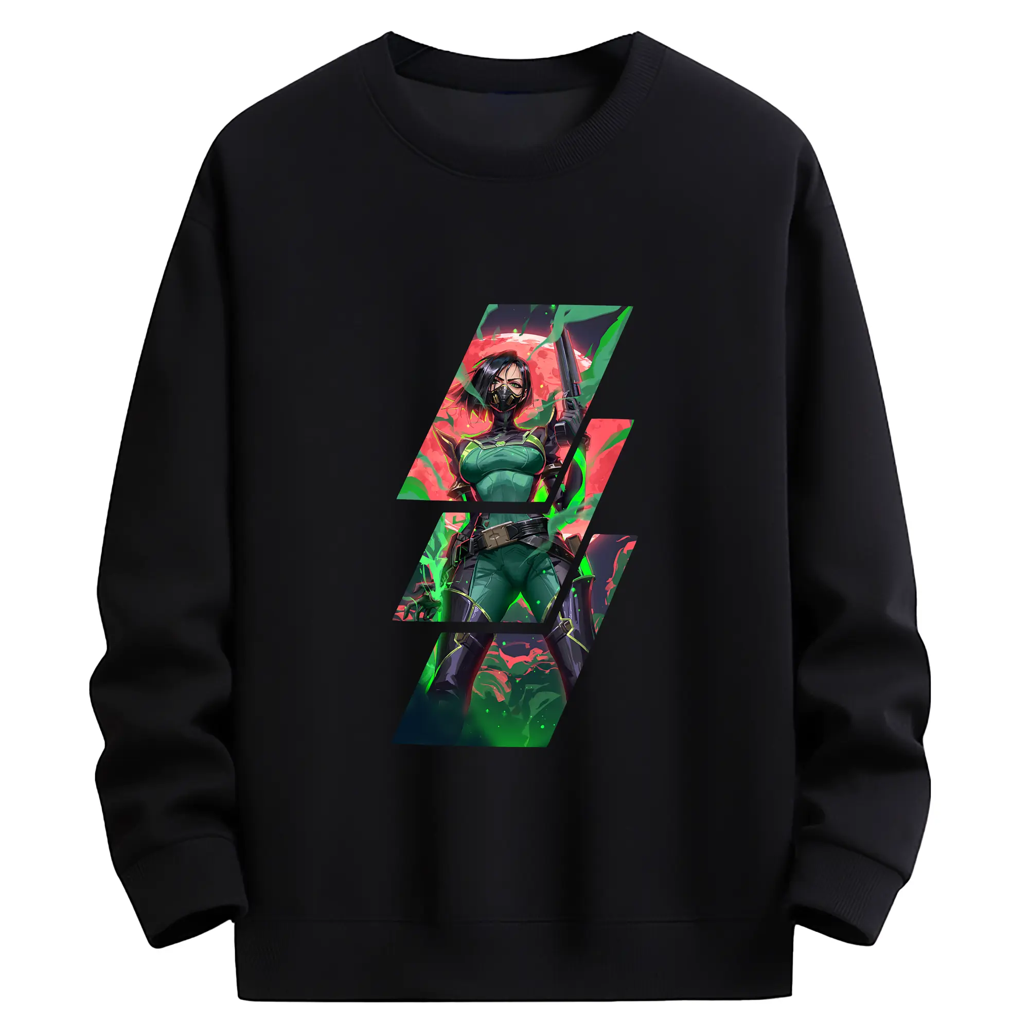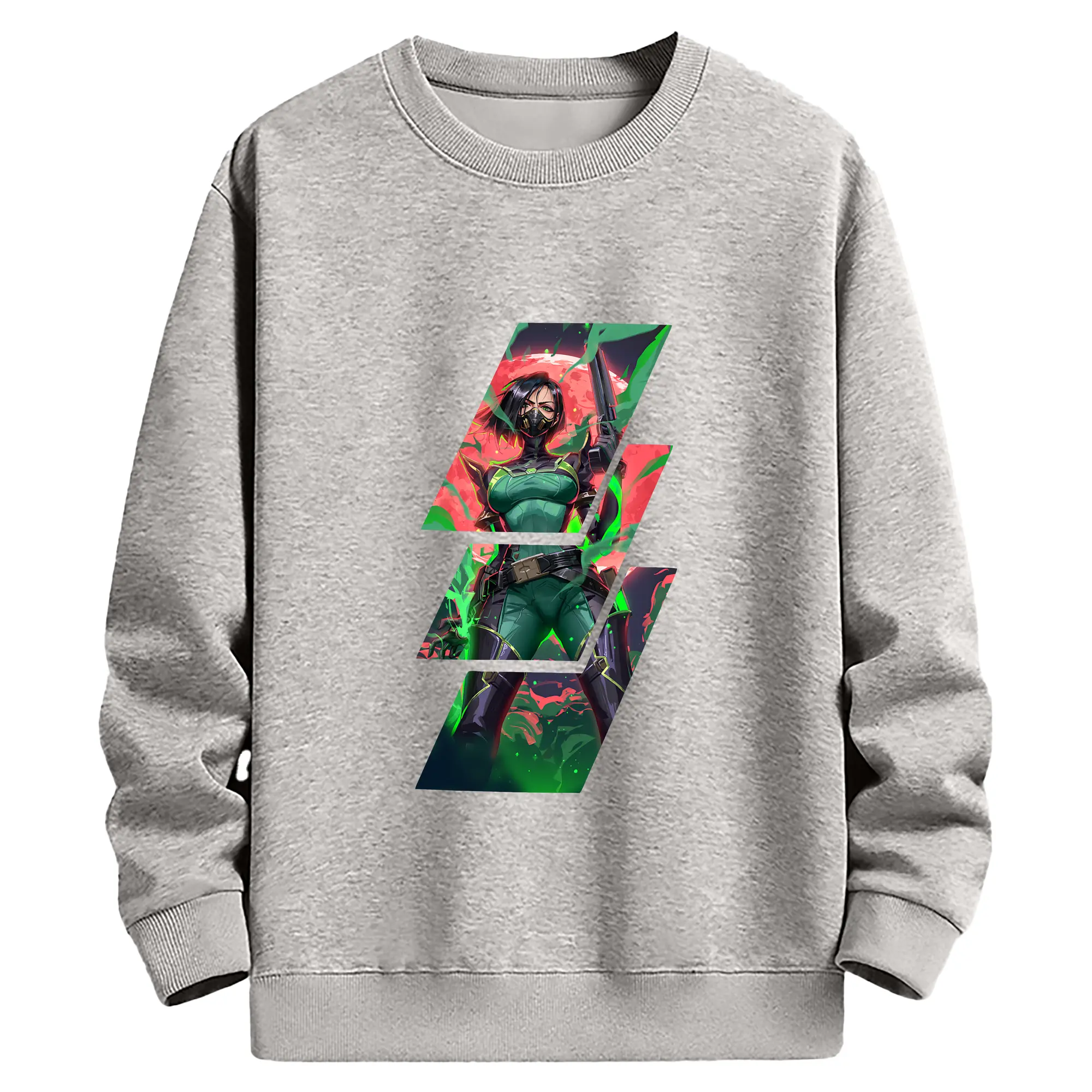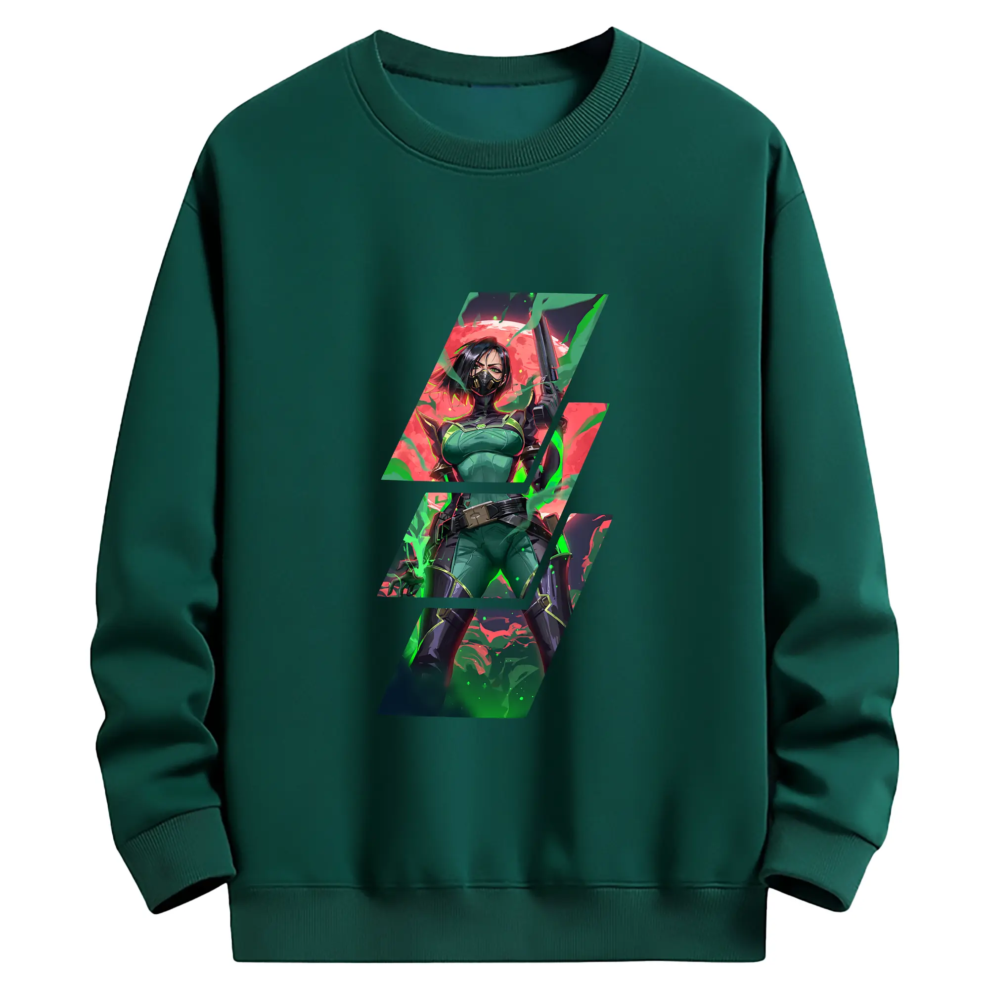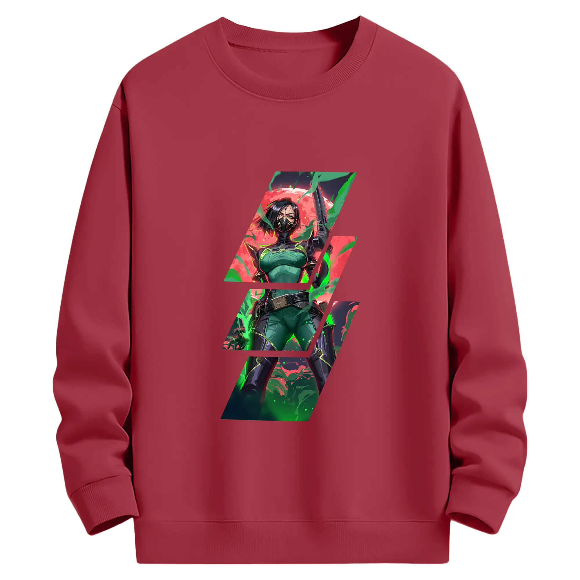 VALORANT グッズ,ヴァイパー - 薄手 クルーネック スウェット 裏毛260g · ポリエステル 春秋向け カジュアル 男女兼用 · トレーナー デイリー スポーツ 散歩に最適