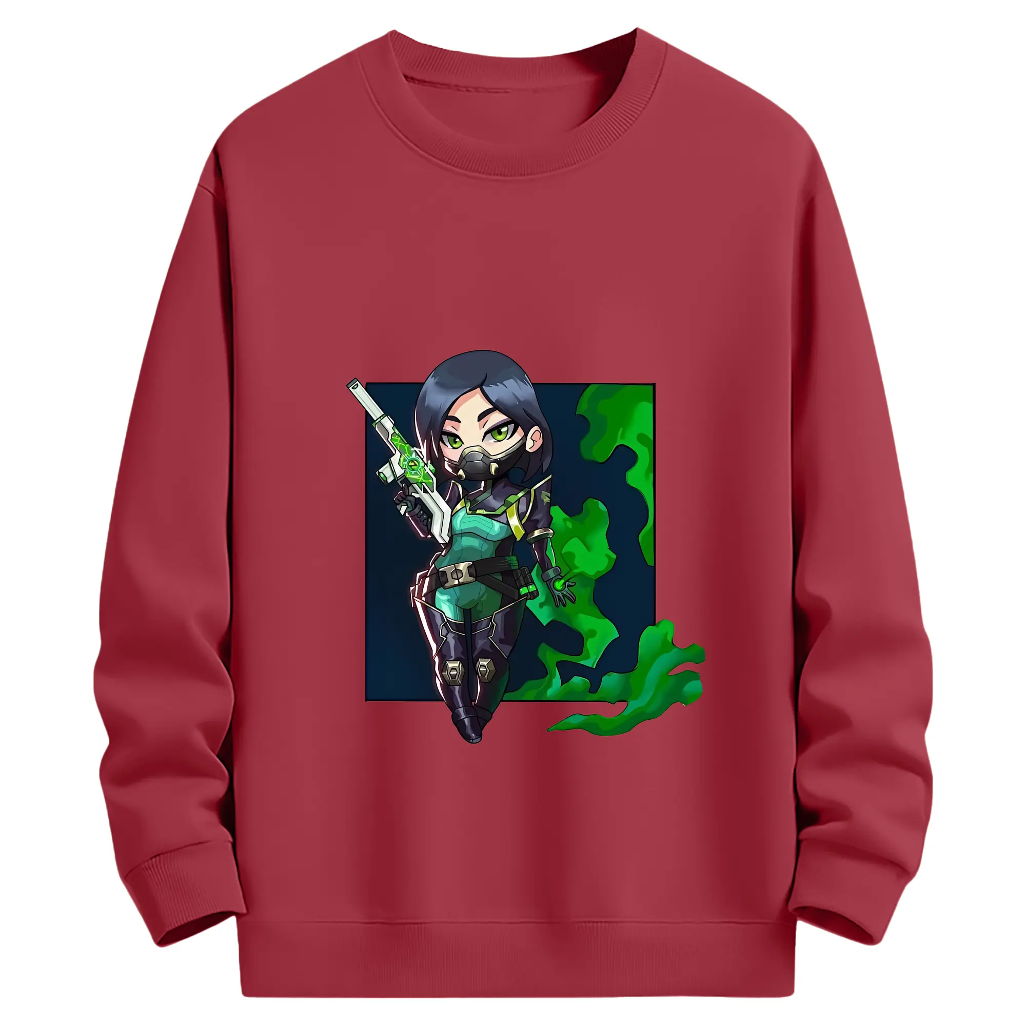 VALORANT グッズ,ヴァイパー - 薄手 クルーネック スウェット 裏毛260g · ポリエステル 春秋向け カジュアル 男女兼用 · トレーナー デイリー スポーツ 散歩に最適