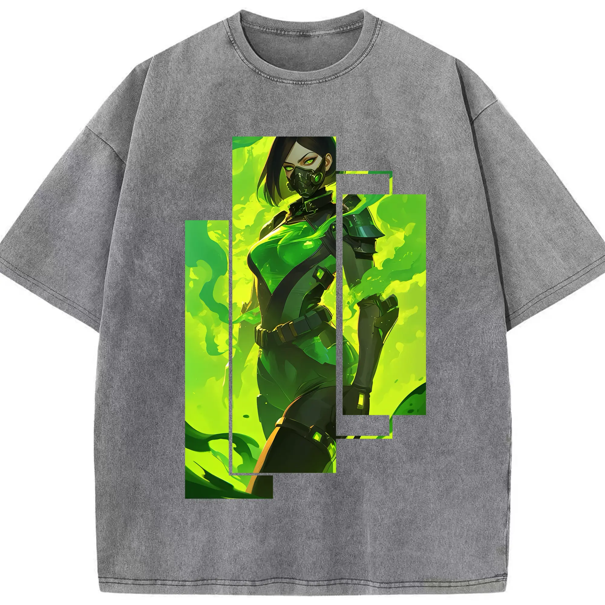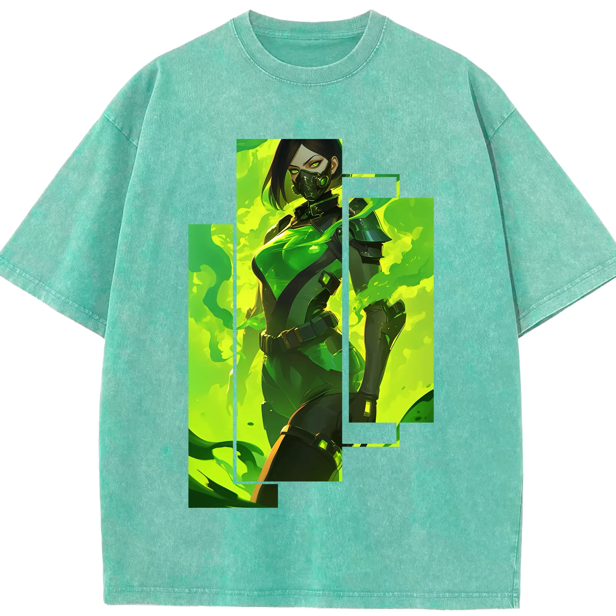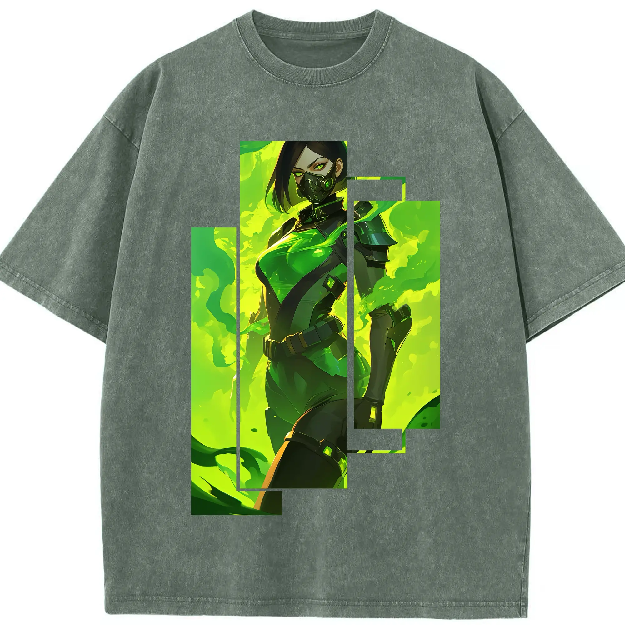 VALORANT グッズ,ヴァイパー - 綿100% ヴィンテージ風 半袖Tシャツ ・ 背面プリント ・ 柔らか肌触り ・ 通気性 快適 ・ スポーツ カジュアル 外出用
