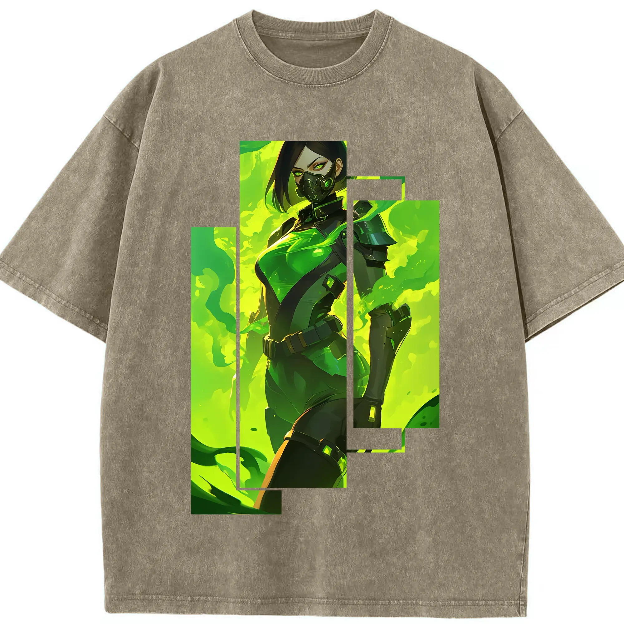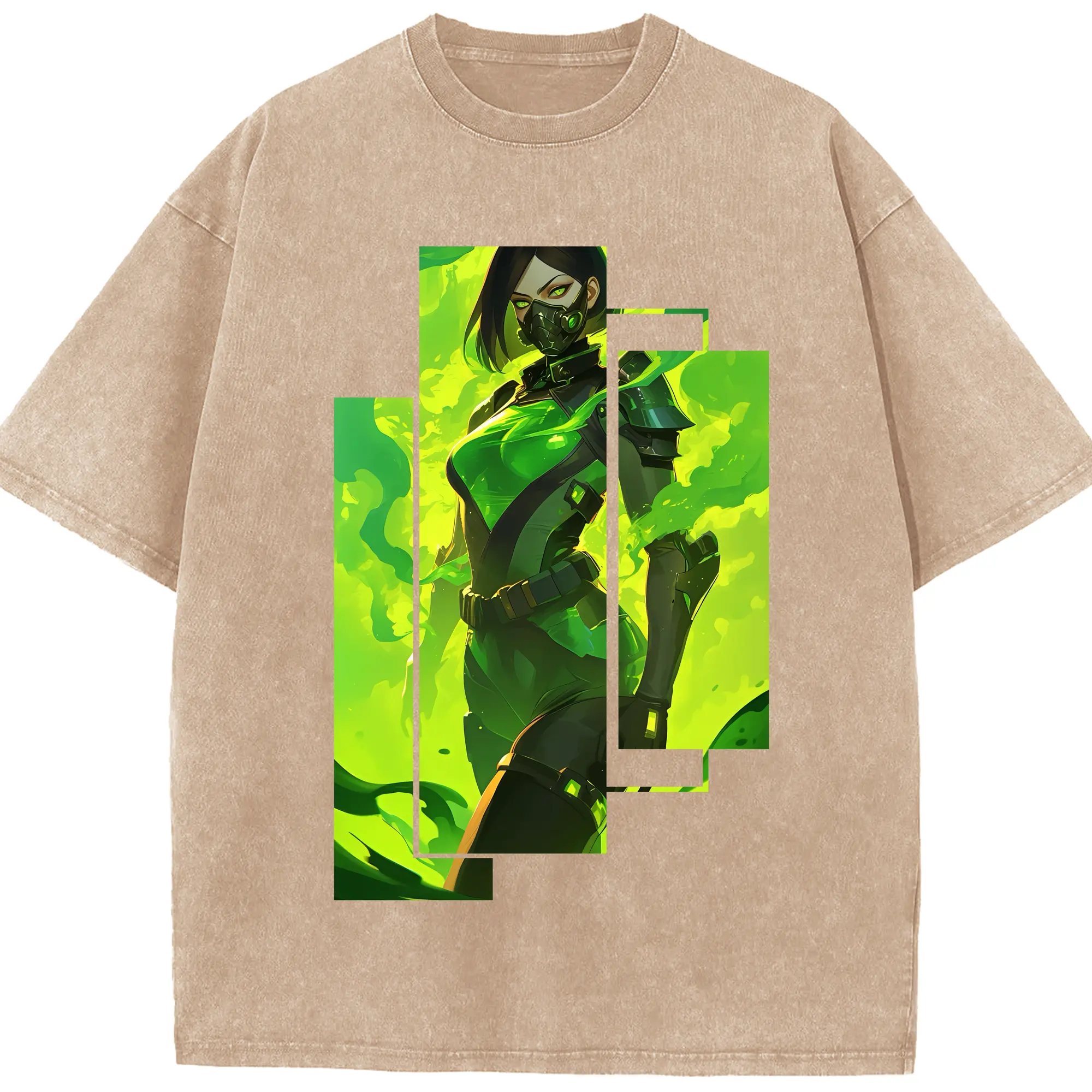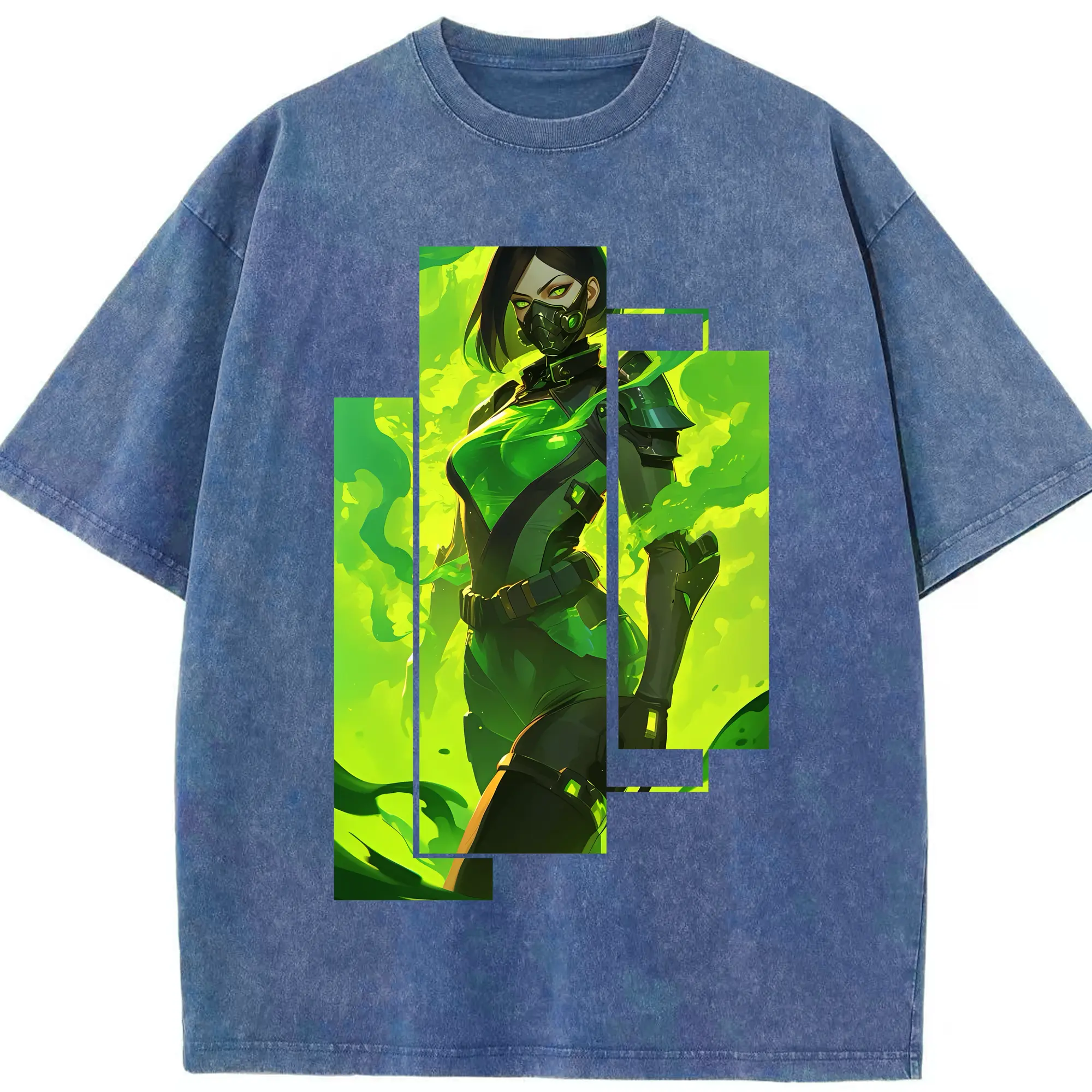 VALORANT グッズ,ヴァイパー - 綿100% ヴィンテージ風 半袖Tシャツ ・ 背面プリント ・ 柔らか肌触り ・ 通気性 快適 ・ スポーツ カジュアル 外出用