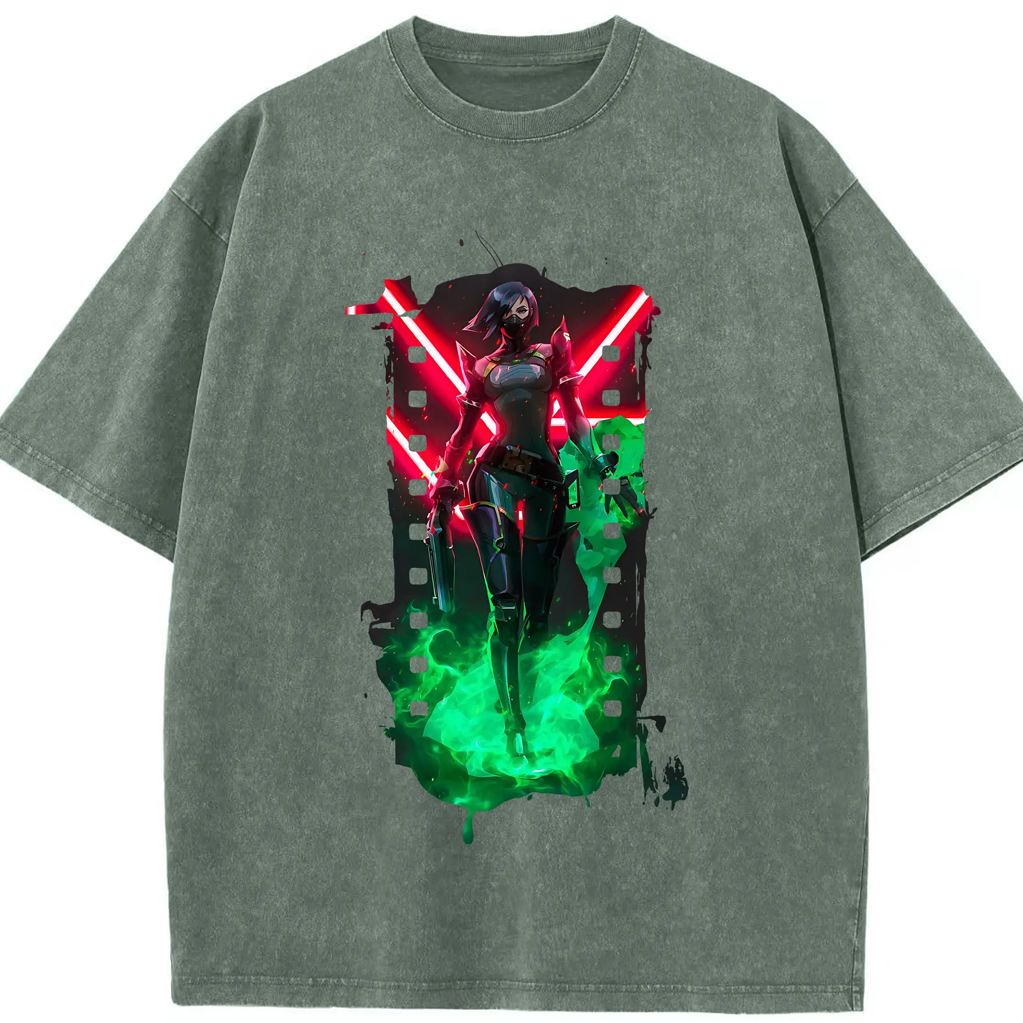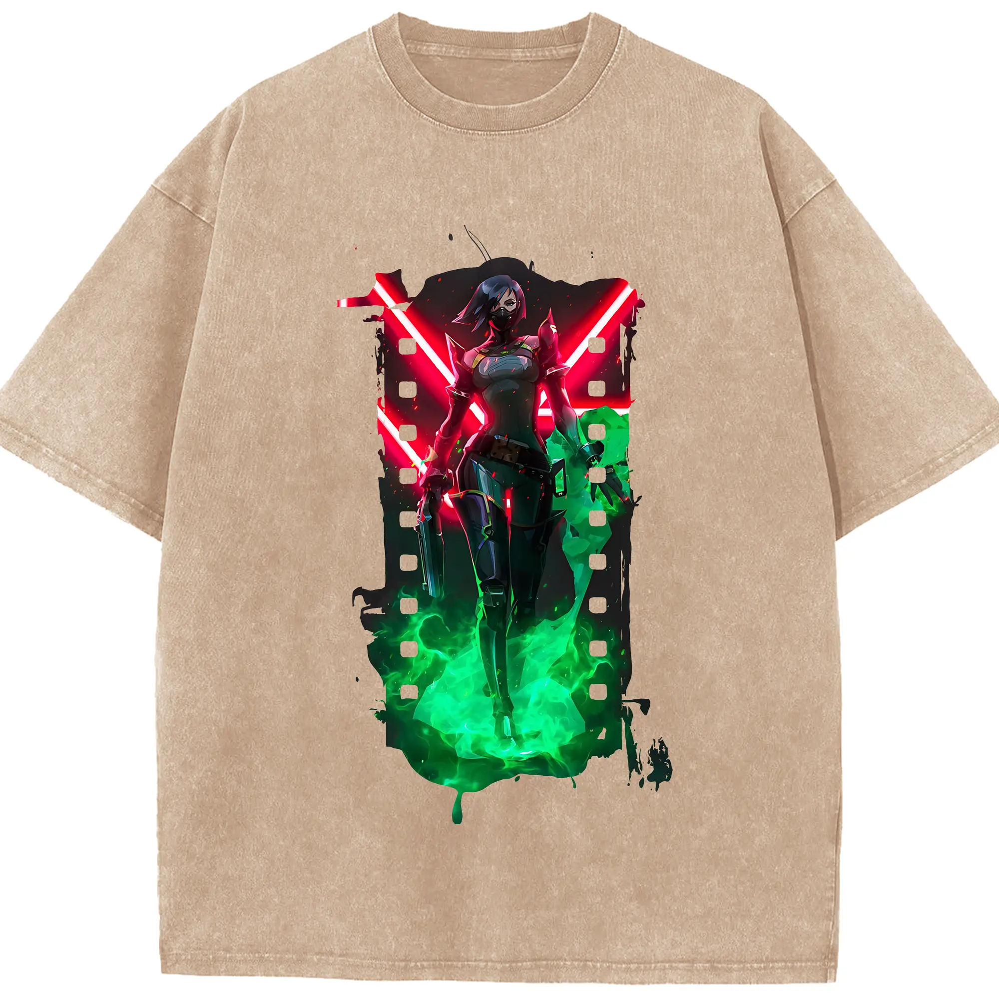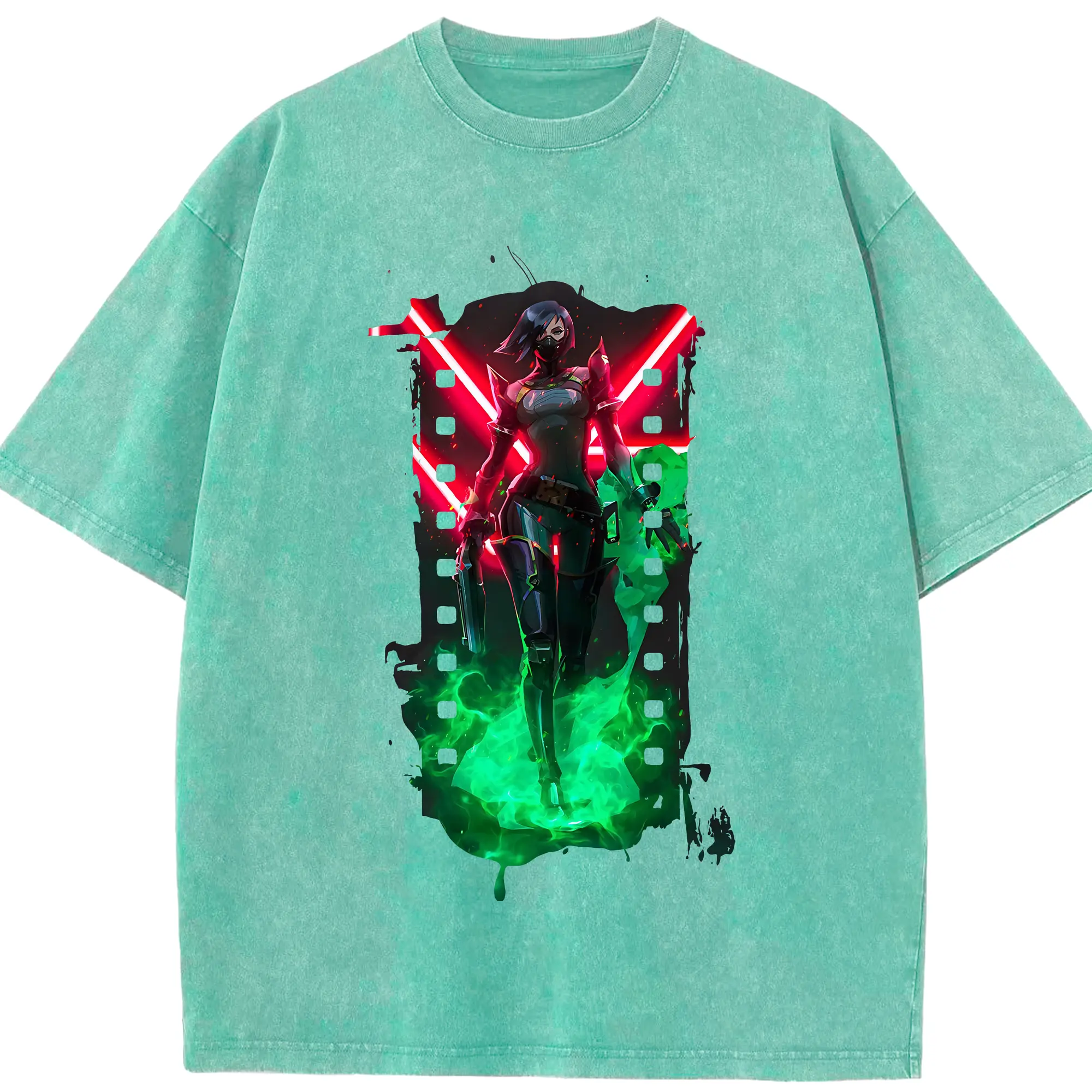 VALORANT グッズ,ヴァイパー - 綿100% ヴィンテージ風 半袖Tシャツ ・ 背面プリント ・ 柔らか肌触り ・ 通気性 快適 ・ スポーツ カジュアル 外出用