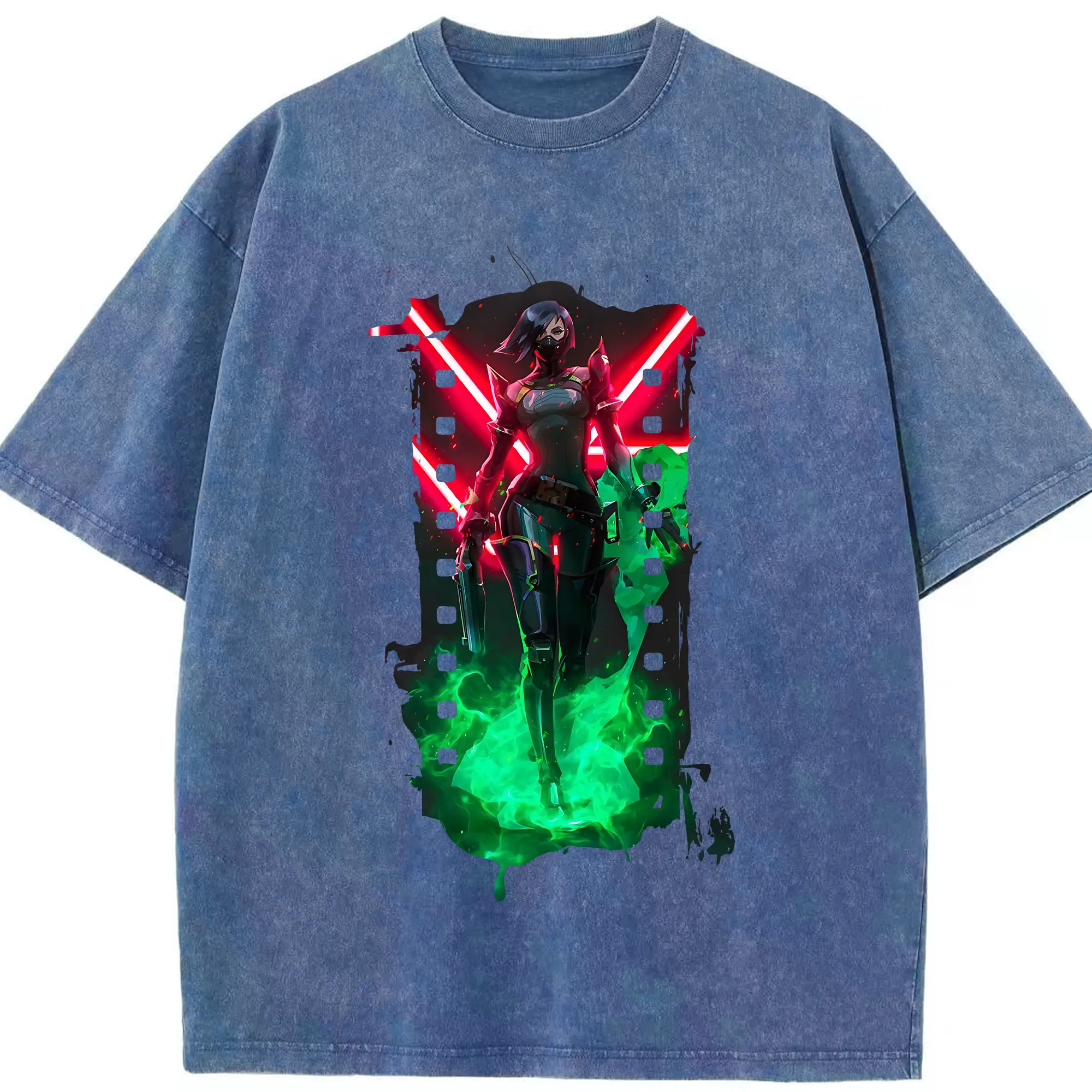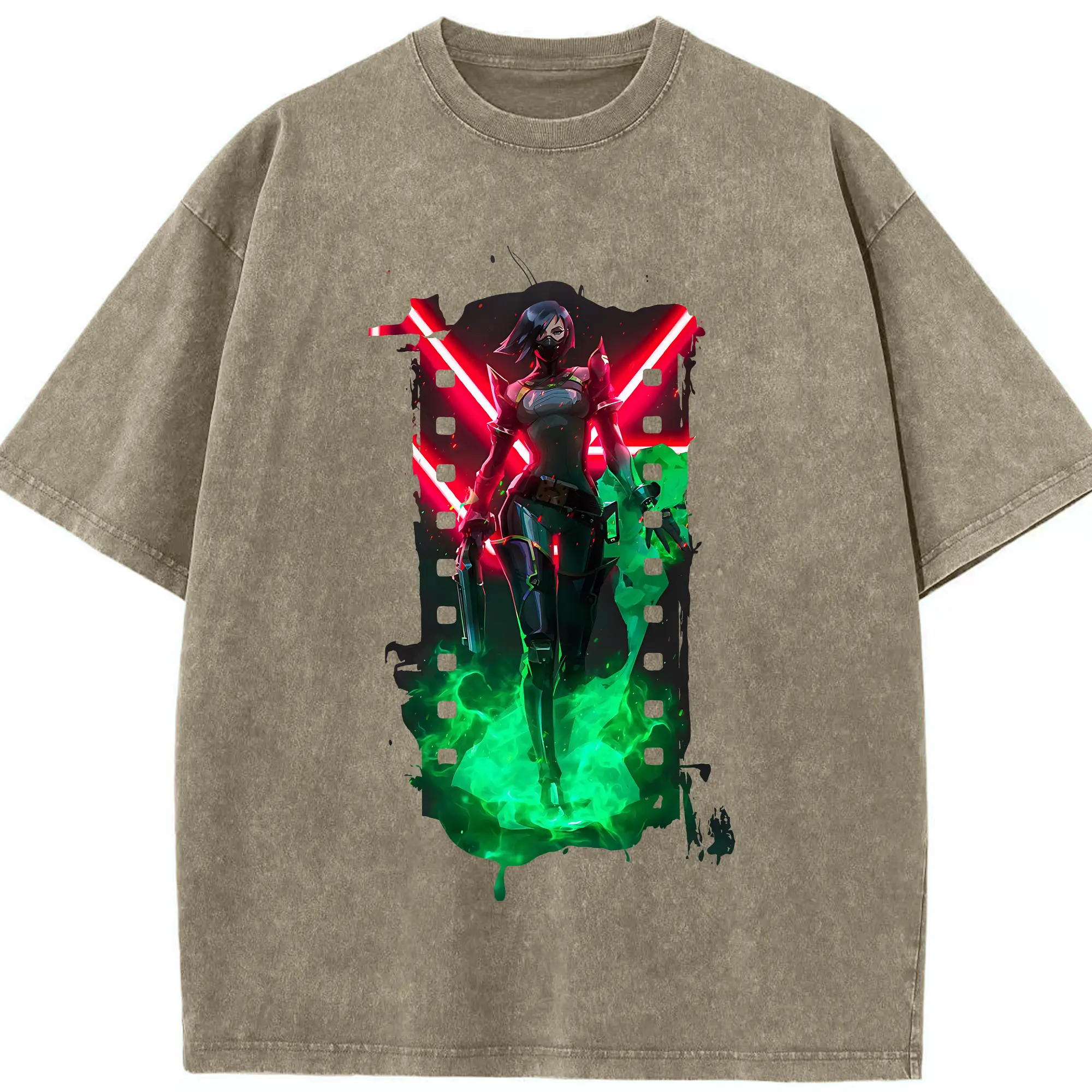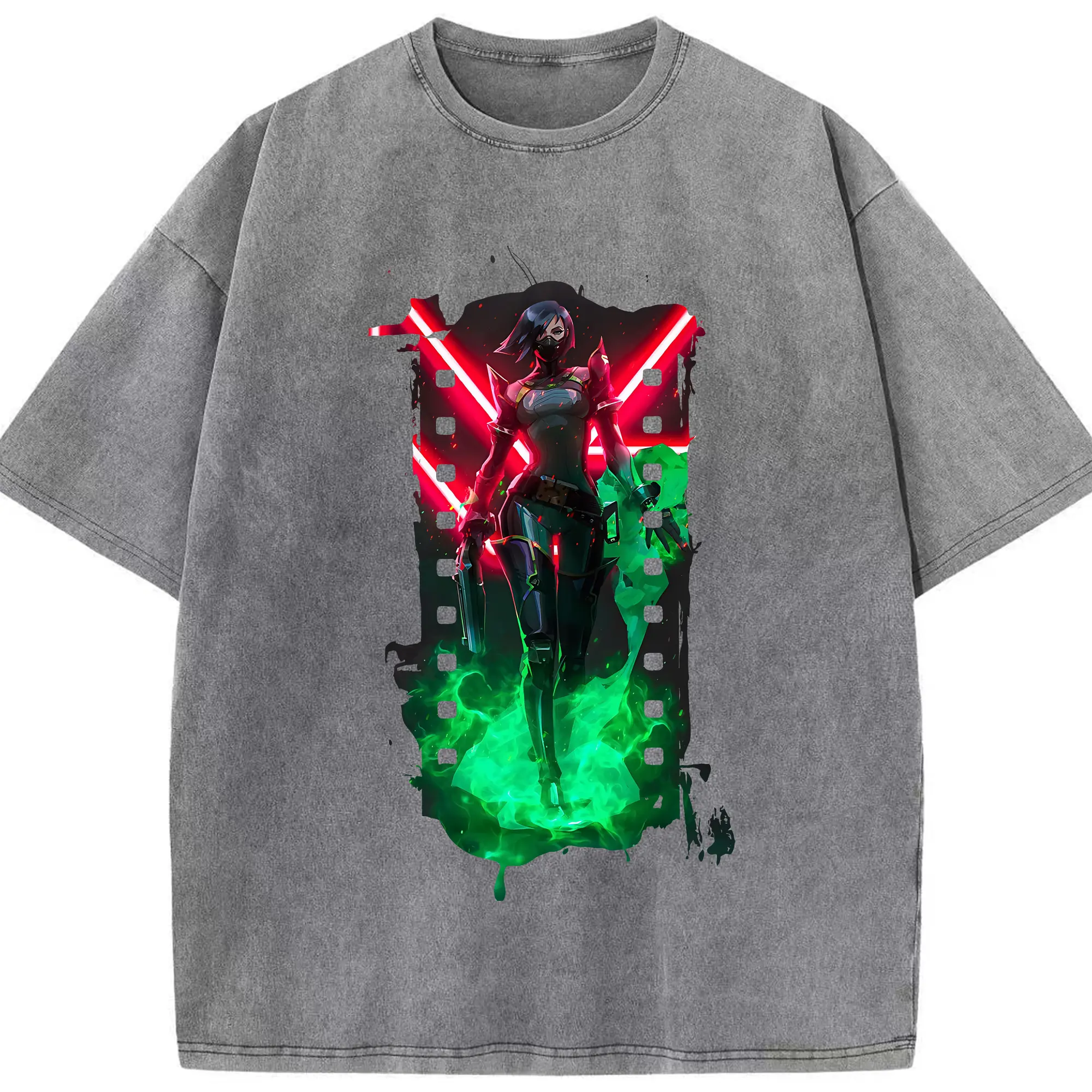 VALORANT グッズ,ヴァイパー - 綿100% ヴィンテージ風 半袖Tシャツ ・ 背面プリント ・ 柔らか肌触り ・ 通気性 快適 ・ スポーツ カジュアル 外出用