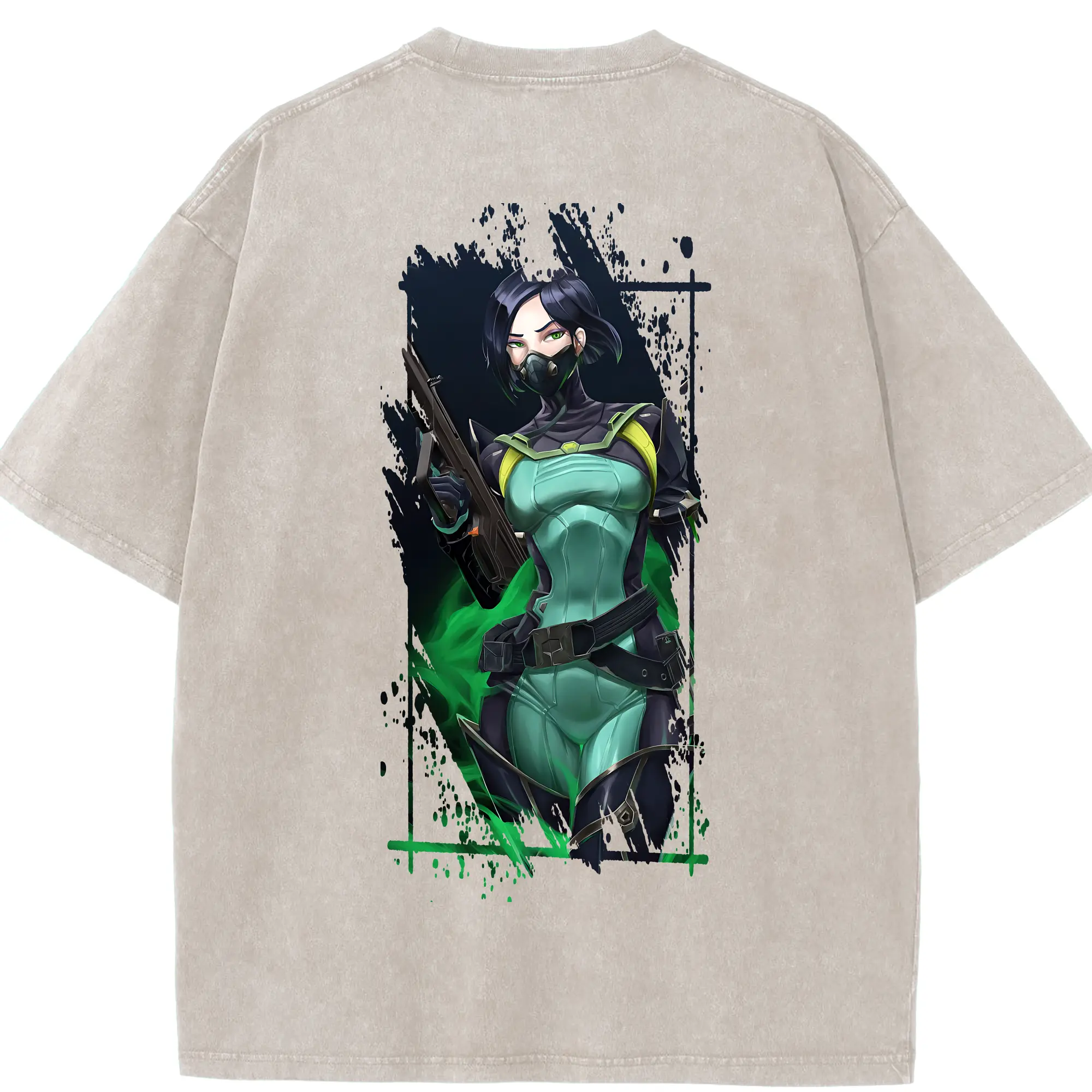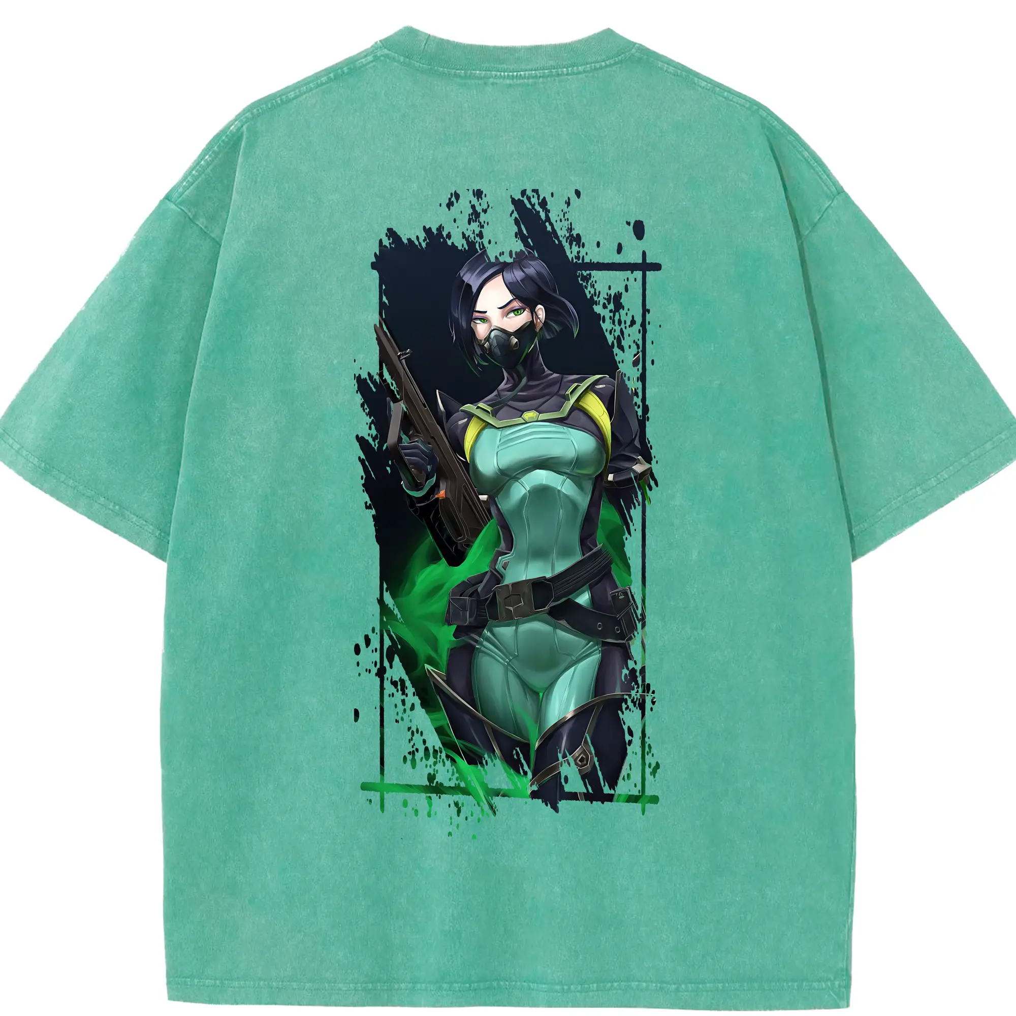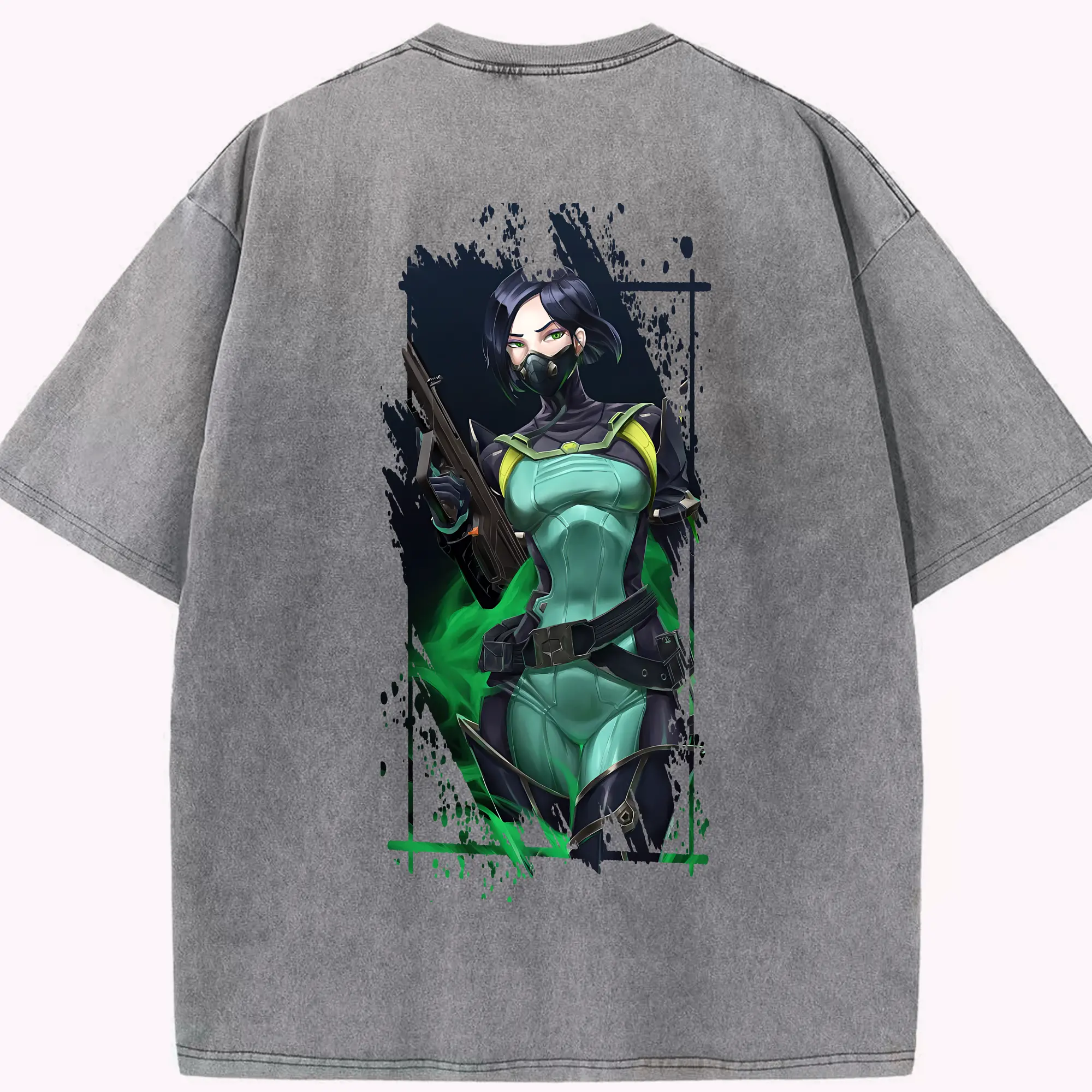 VALORANT グッズ,ヴァイパー - 綿100% ヴィンテージ風 半袖Tシャツ ・ フロントプリント ・ 柔らか肌触り ・ 通気性 快適 ・ スポーツ カジュアル 外出用