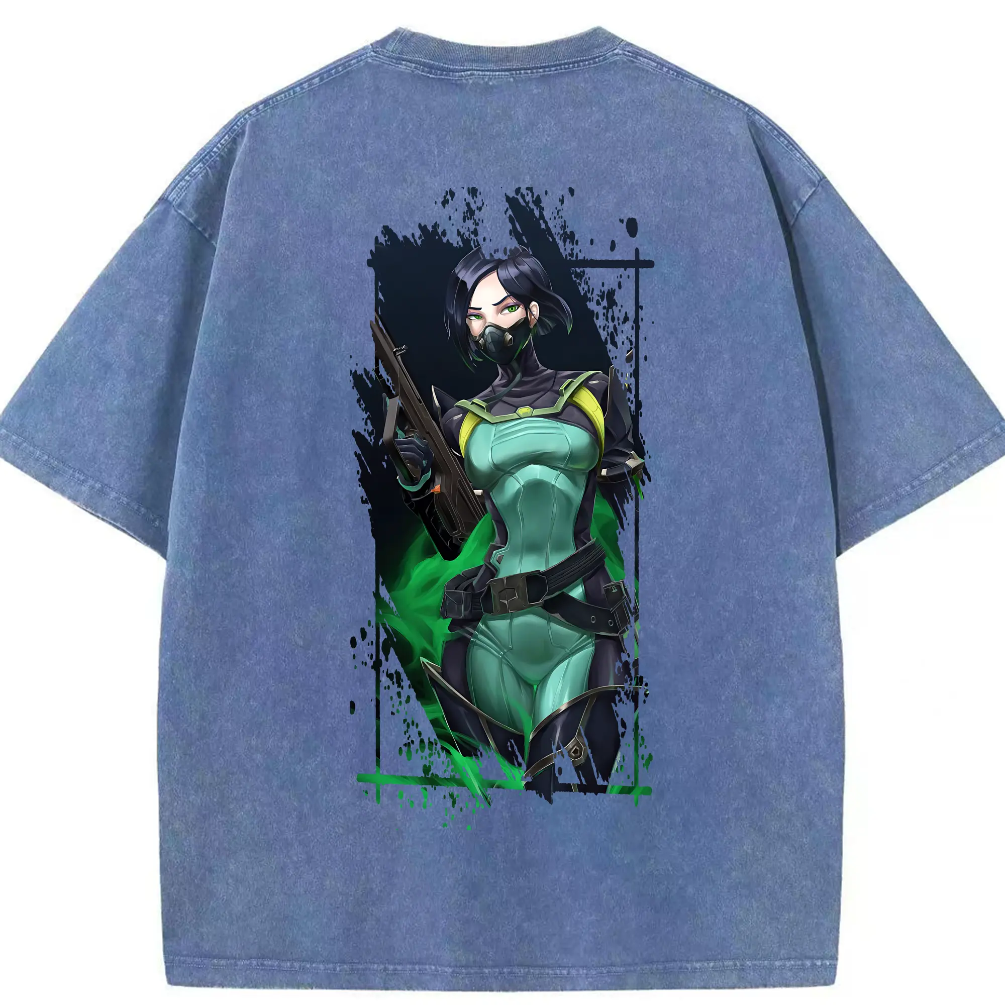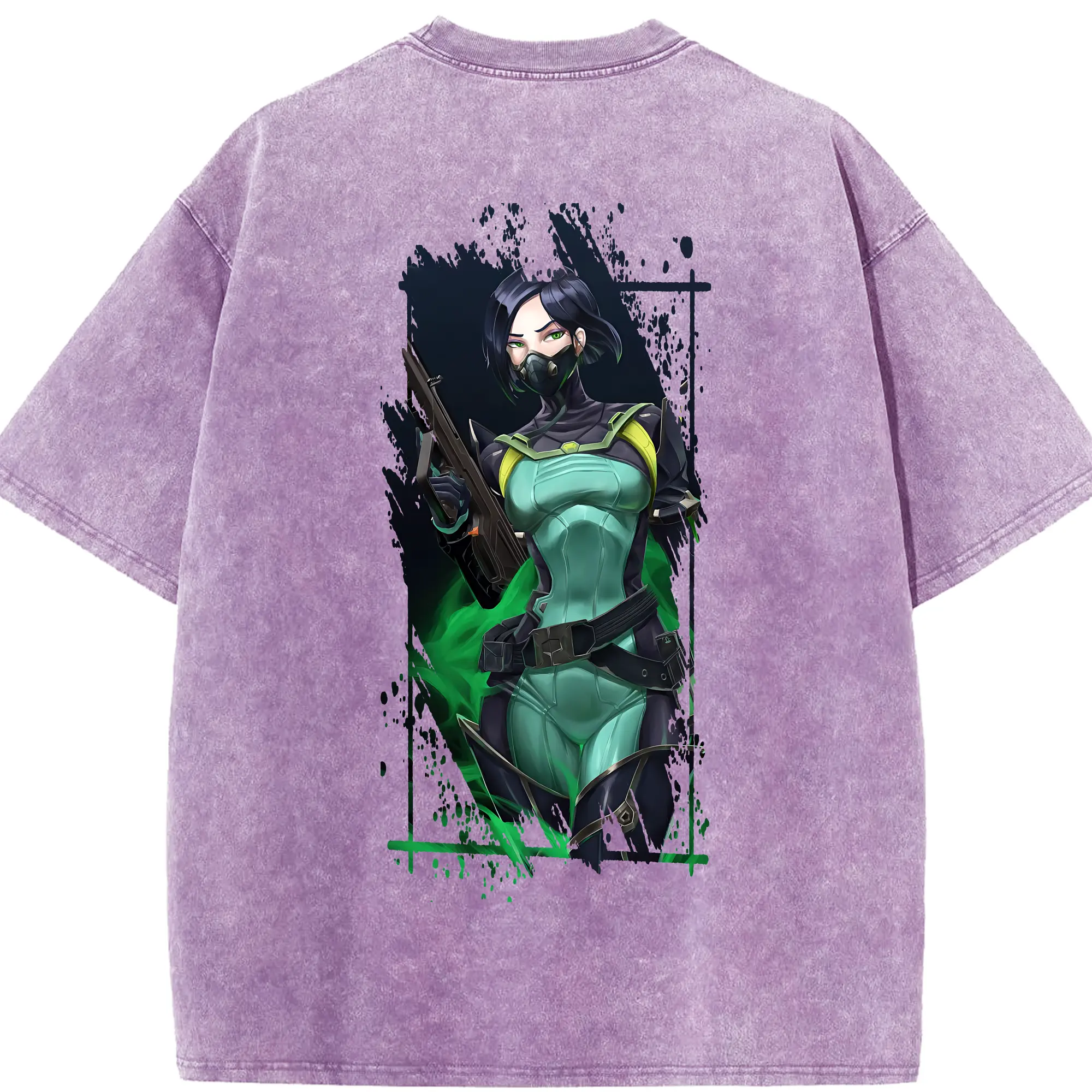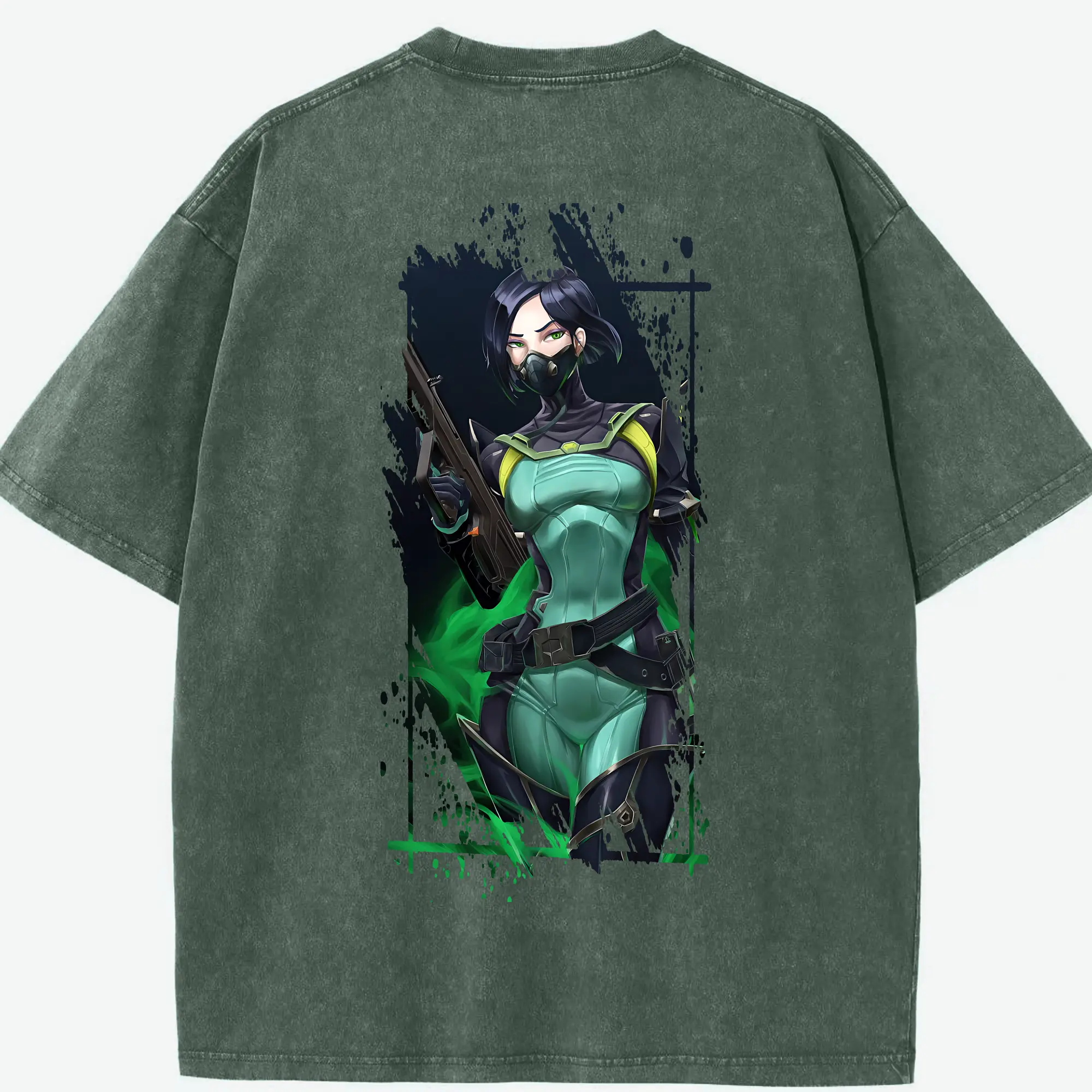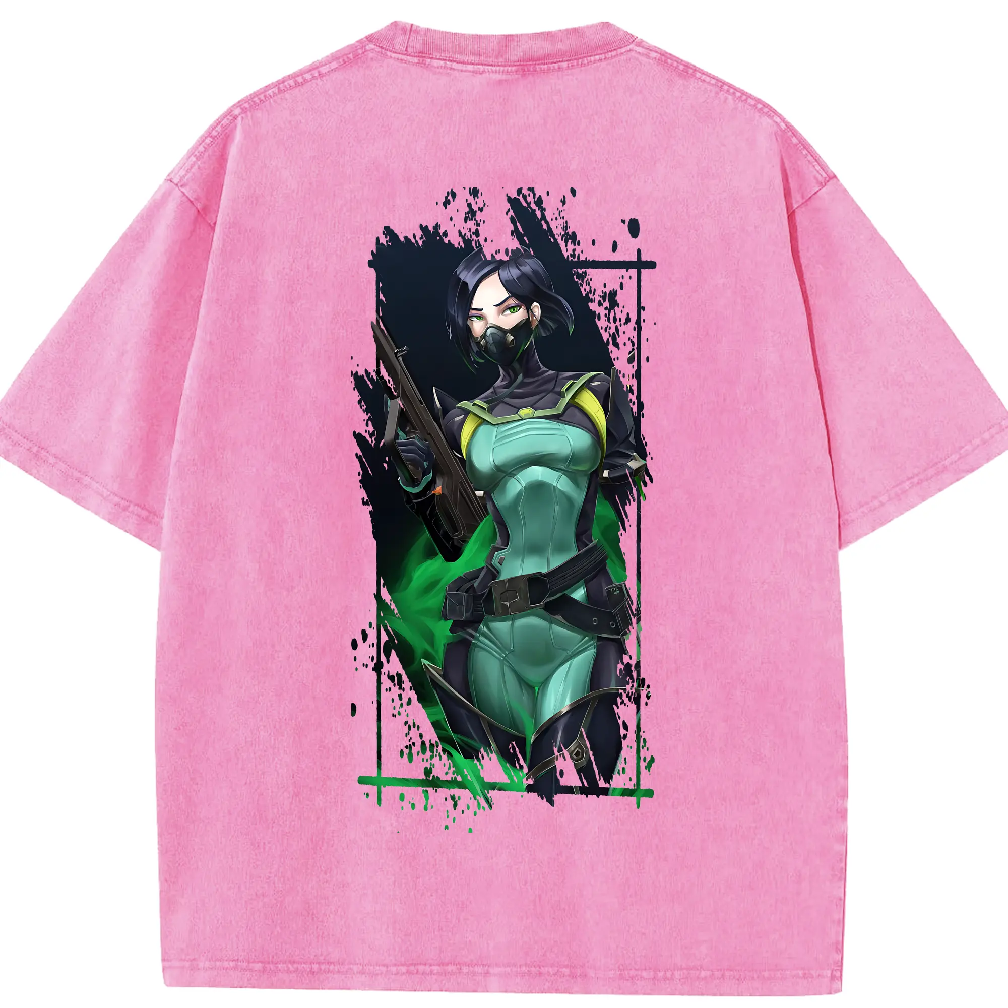 VALORANT グッズ,ヴァイパー - 綿100% ヴィンテージ風 半袖Tシャツ ・ フロントプリント ・ 柔らか肌触り ・ 通気性 快適 ・ スポーツ カジュアル 外出用