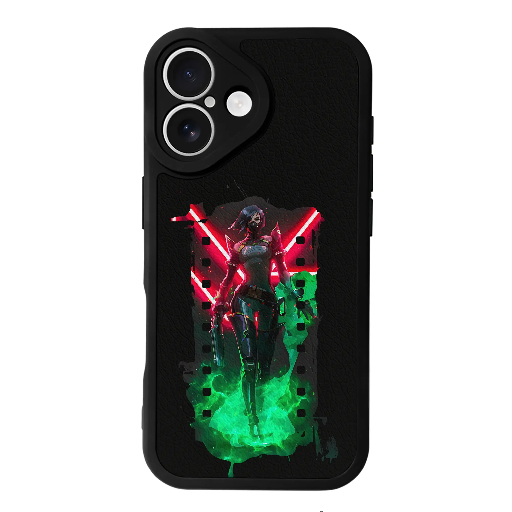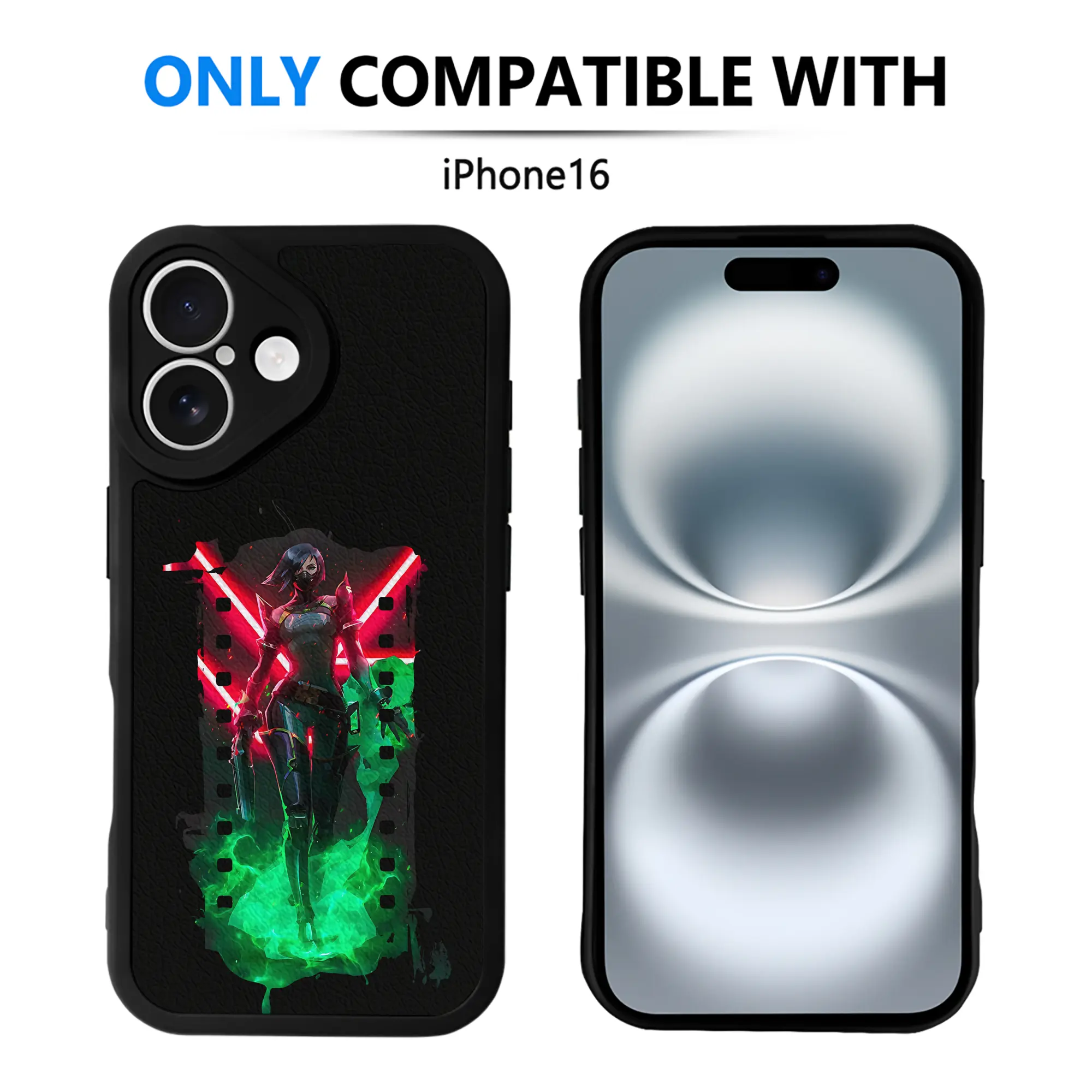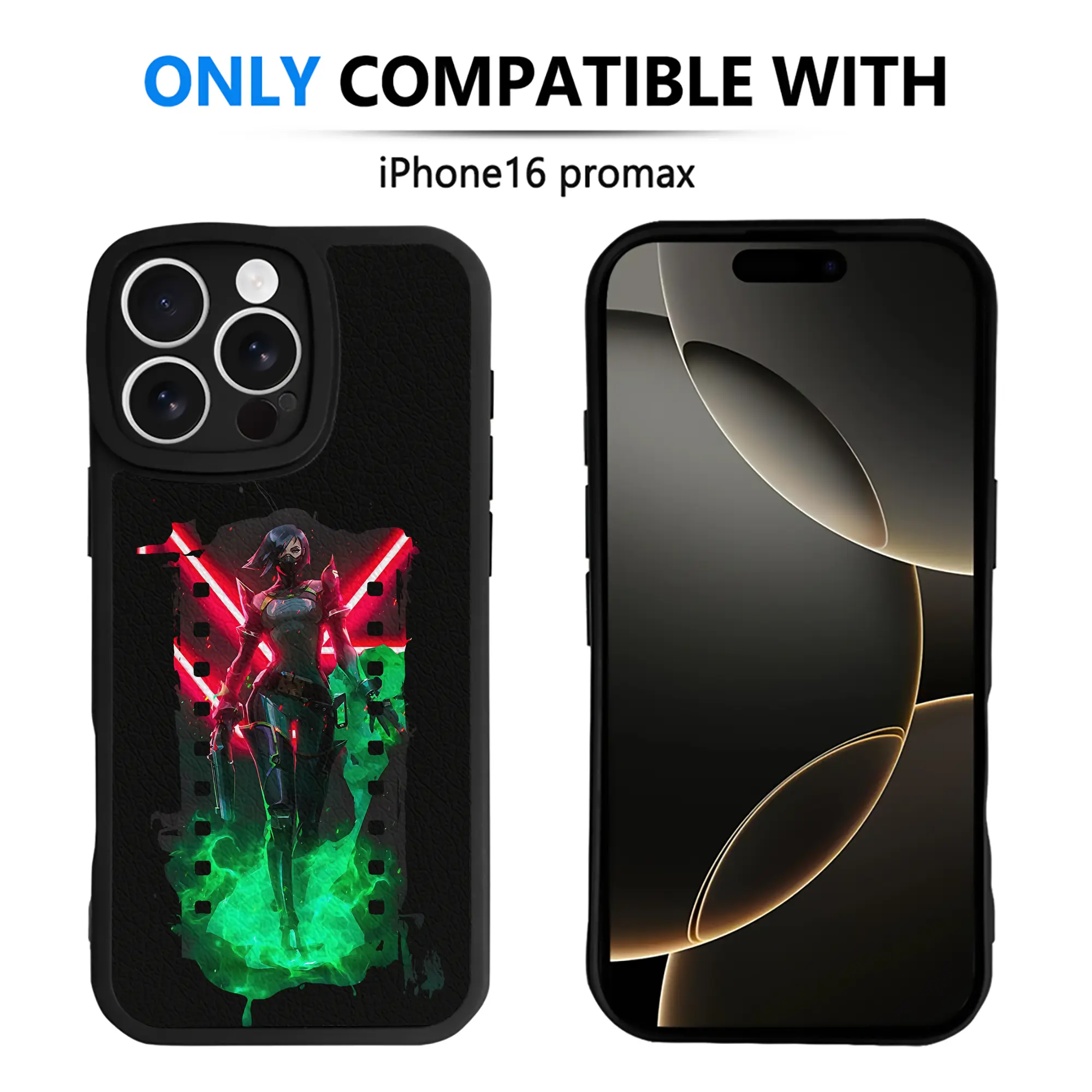 VALORANT グッズ,ヴァイパー - IPhone 16シリーズ対応 ・ シリコンスマホケース ・ レザー調 ・ 高精度フィット ・ 耐衝撃 ・ ワイヤレス充電対応 ・ 精密カット