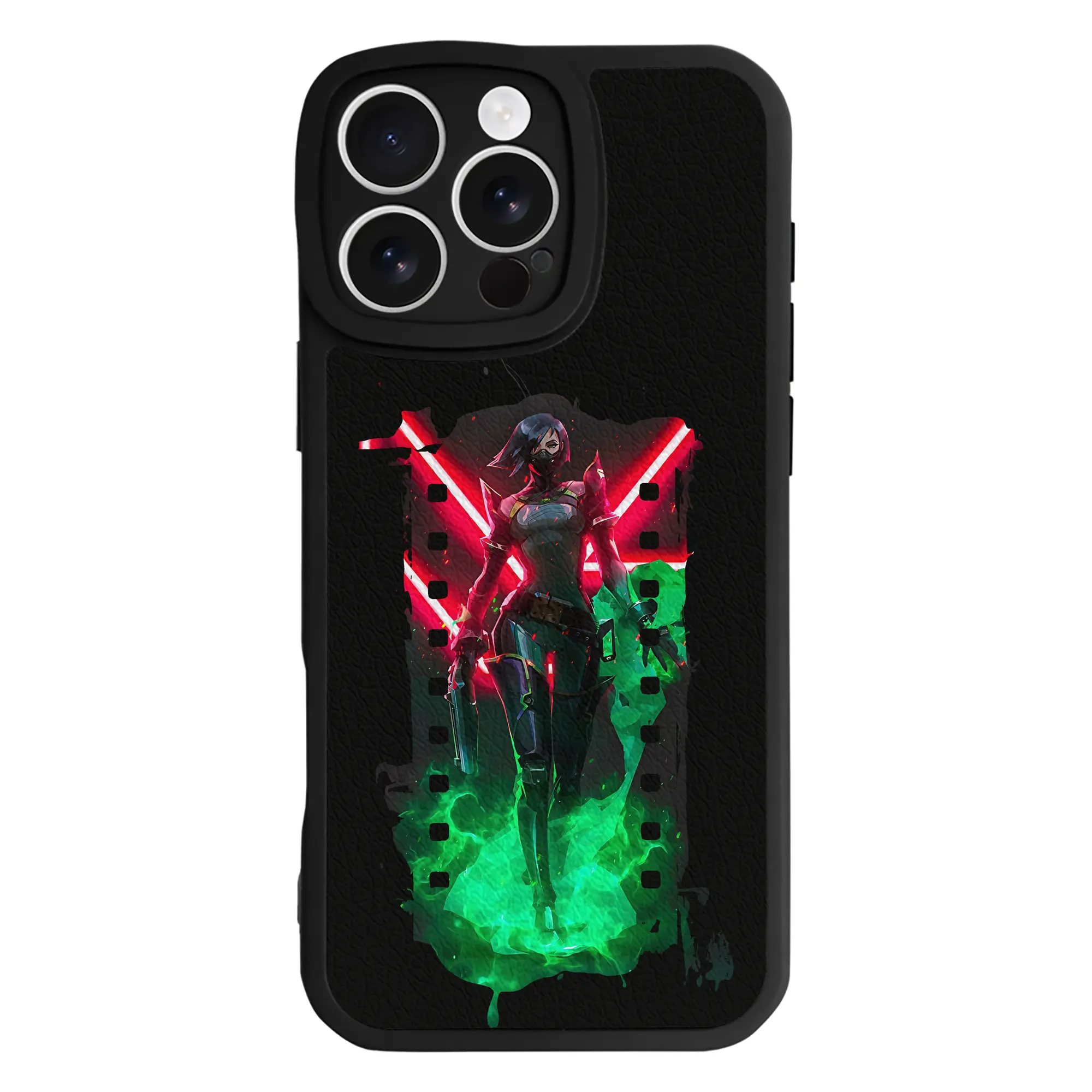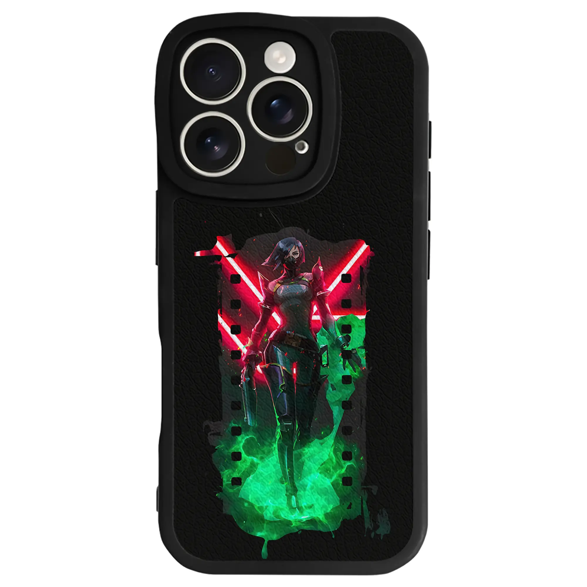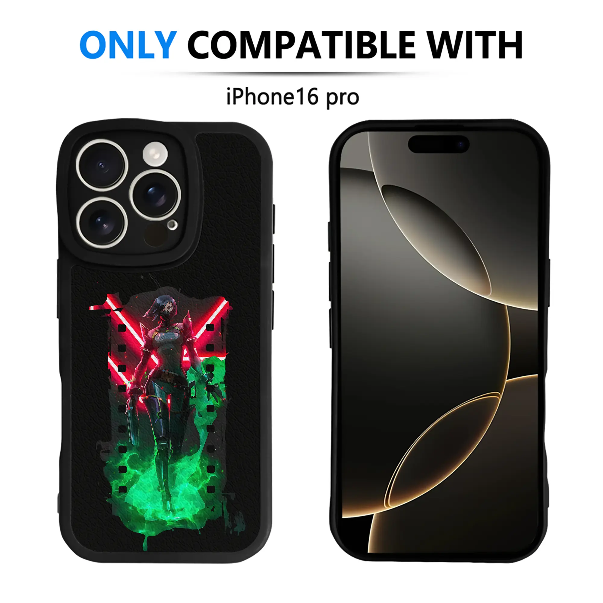 VALORANT グッズ,ヴァイパー - IPhone 16シリーズ対応 ・ シリコンスマホケース ・ レザー調 ・ 高精度フィット ・ 耐衝撃 ・ ワイヤレス充電対応 ・ 精密カット