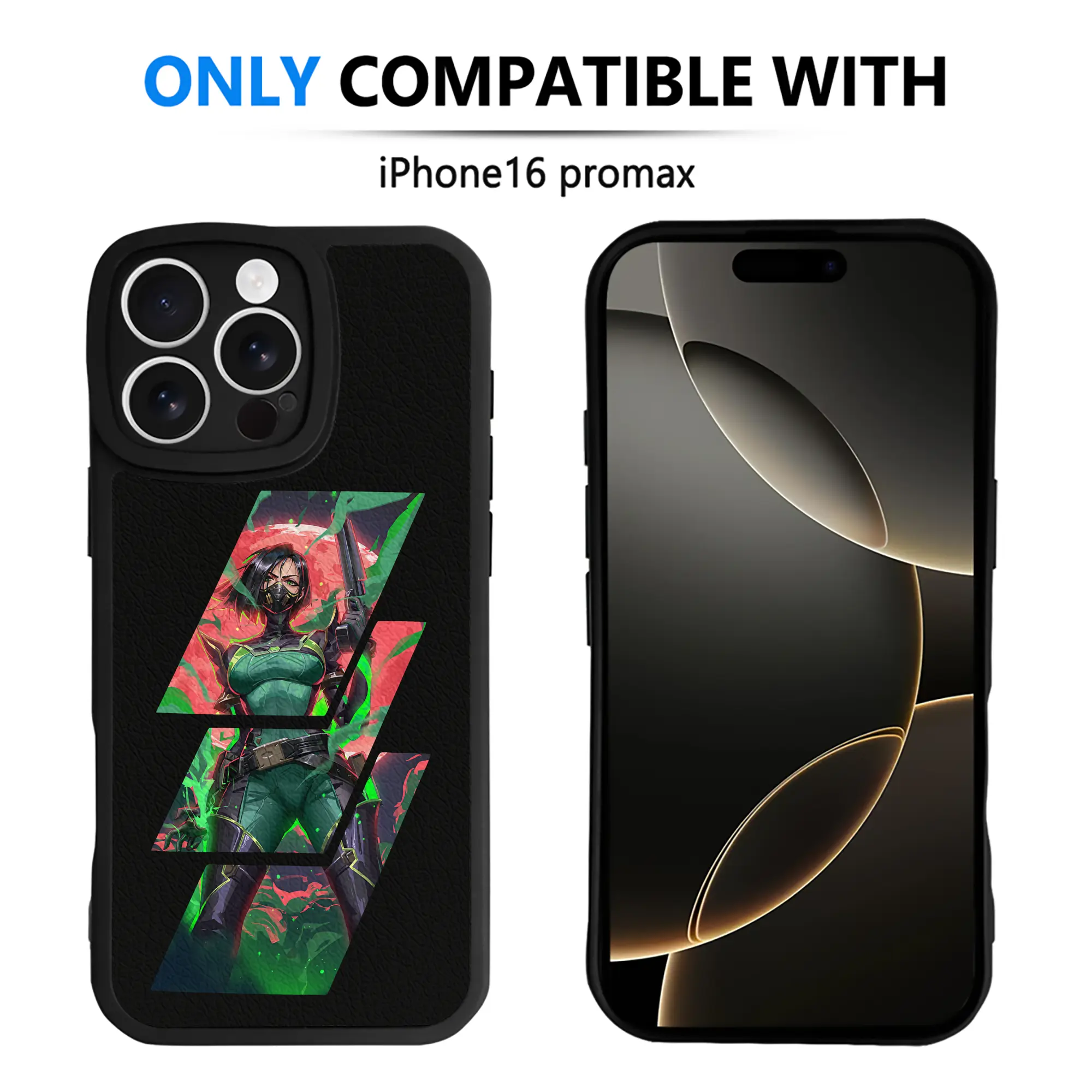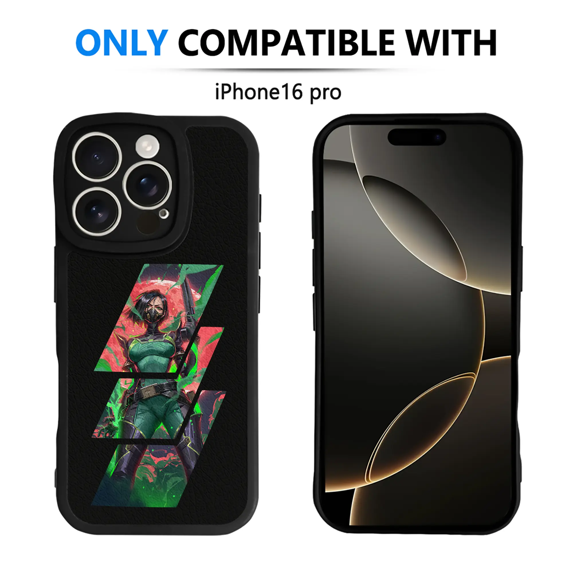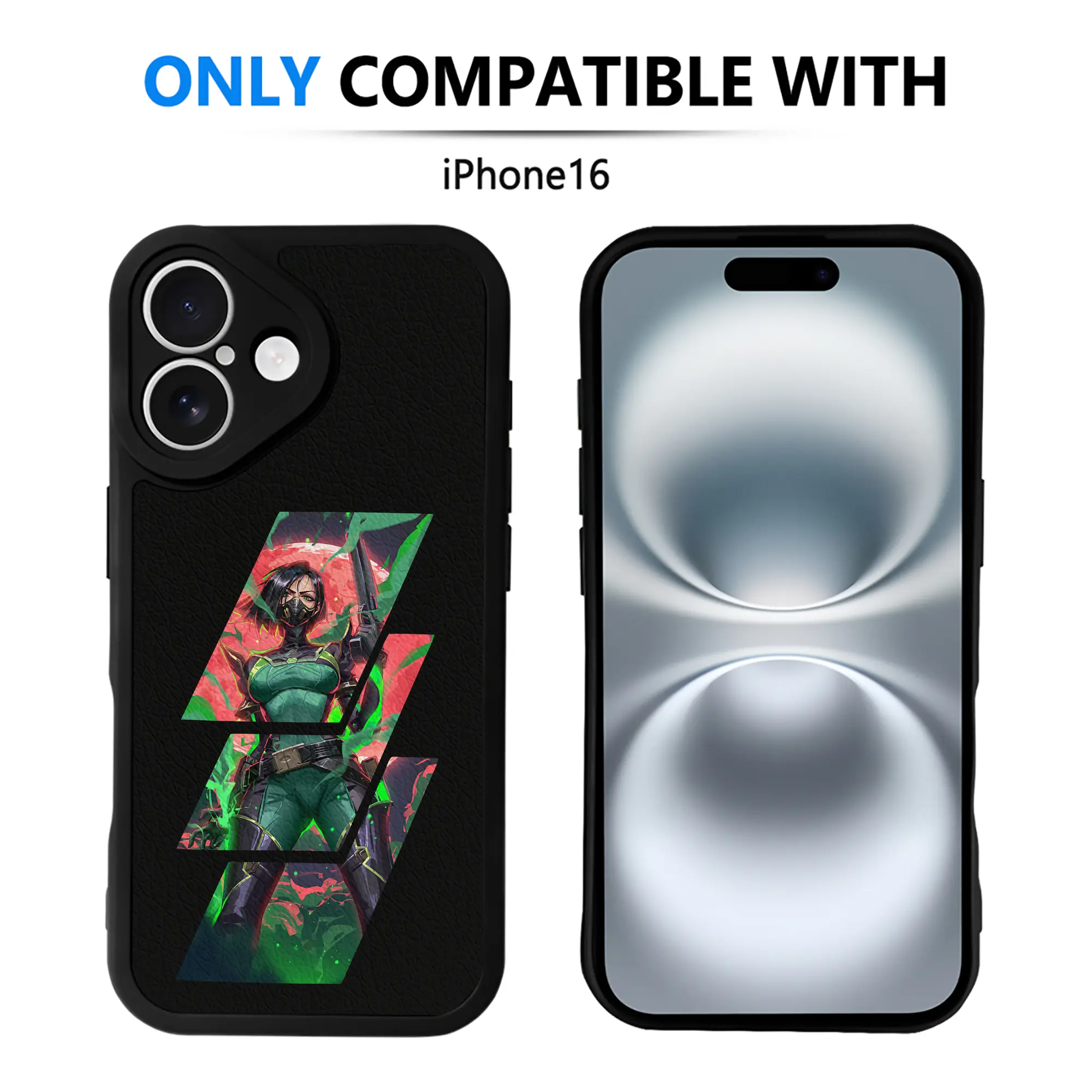 VALORANT グッズ,ヴァイパー - IPhone 16シリーズ対応 ・ シリコンスマホケース ・ レザー調 ・ 高精度フィット ・ 耐衝撃 ・ ワイヤレス充電対応 ・ 精密カット