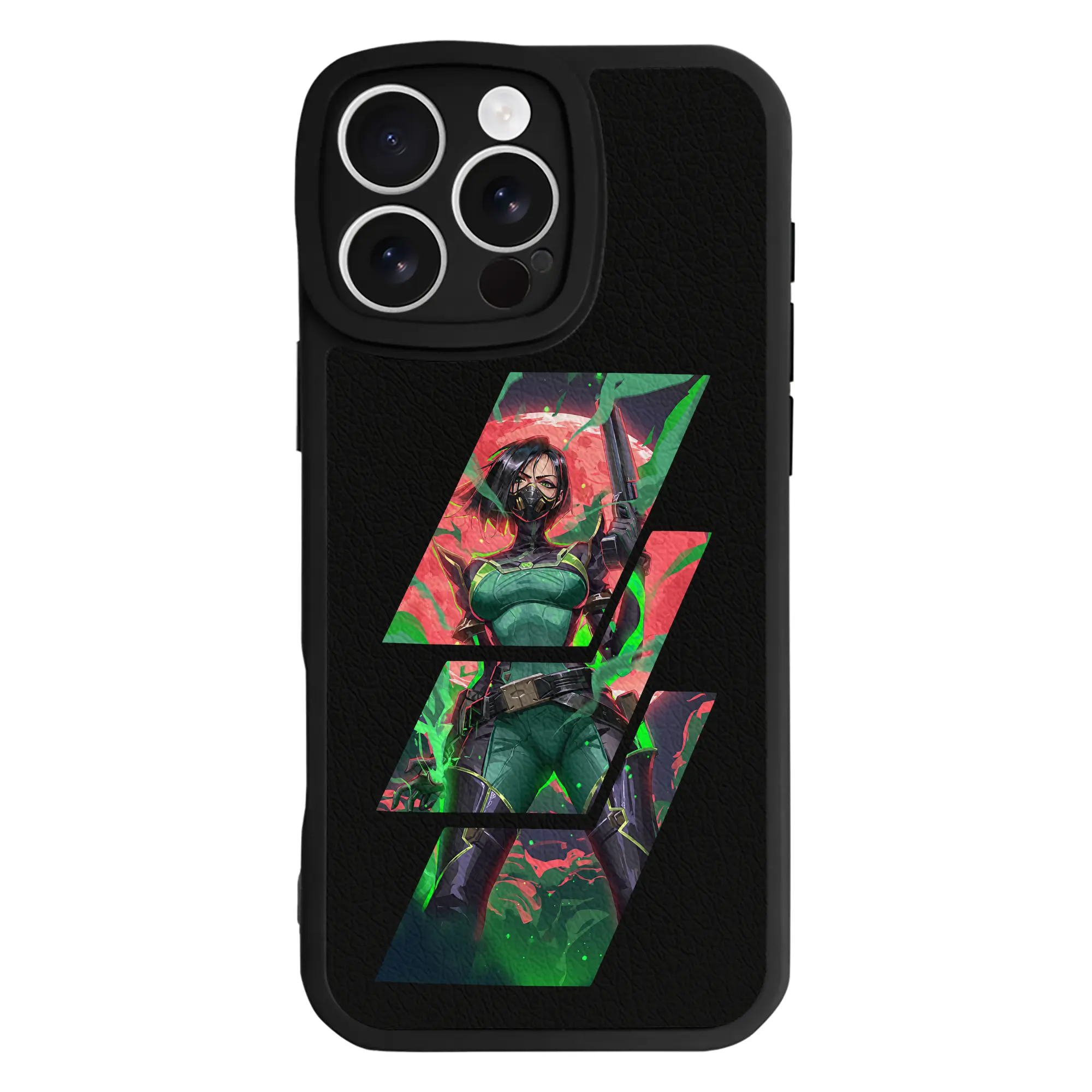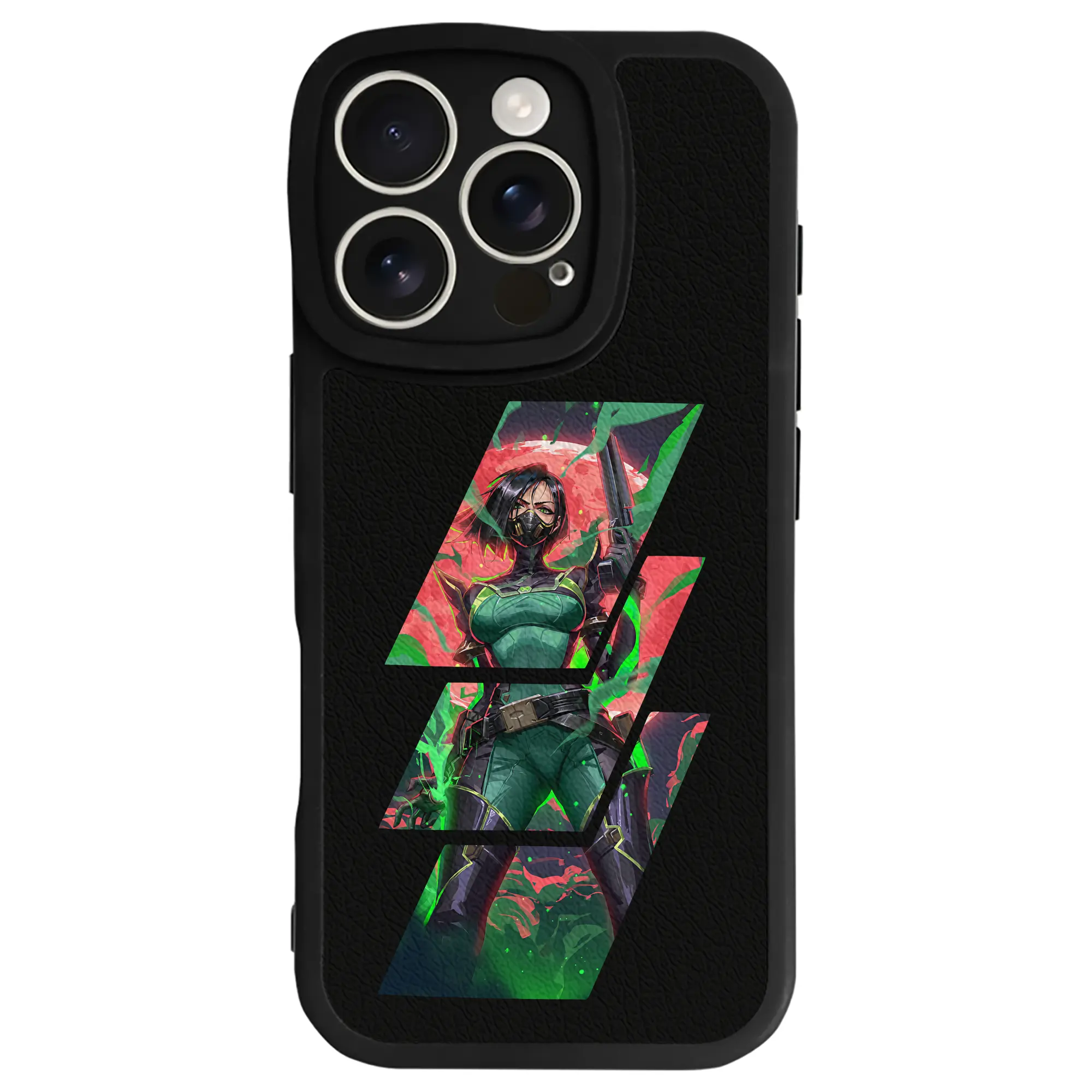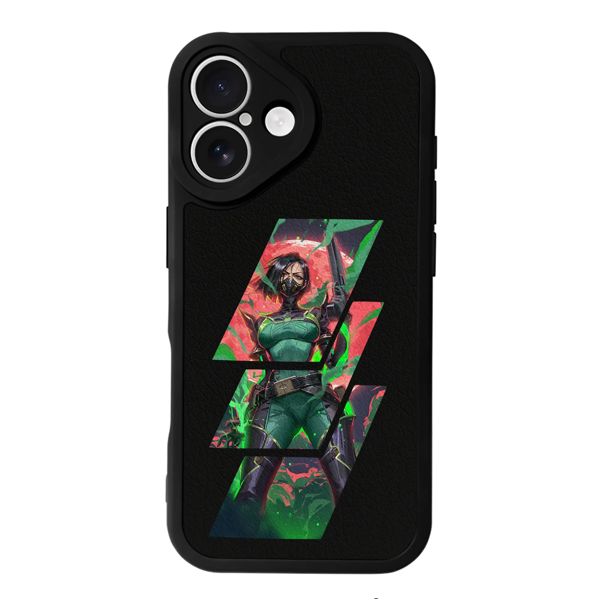 VALORANT グッズ,ヴァイパー - IPhone 16シリーズ対応 ・ シリコンスマホケース ・ レザー調 ・ 高精度フィット ・ 耐衝撃 ・ ワイヤレス充電対応 ・ 精密カット